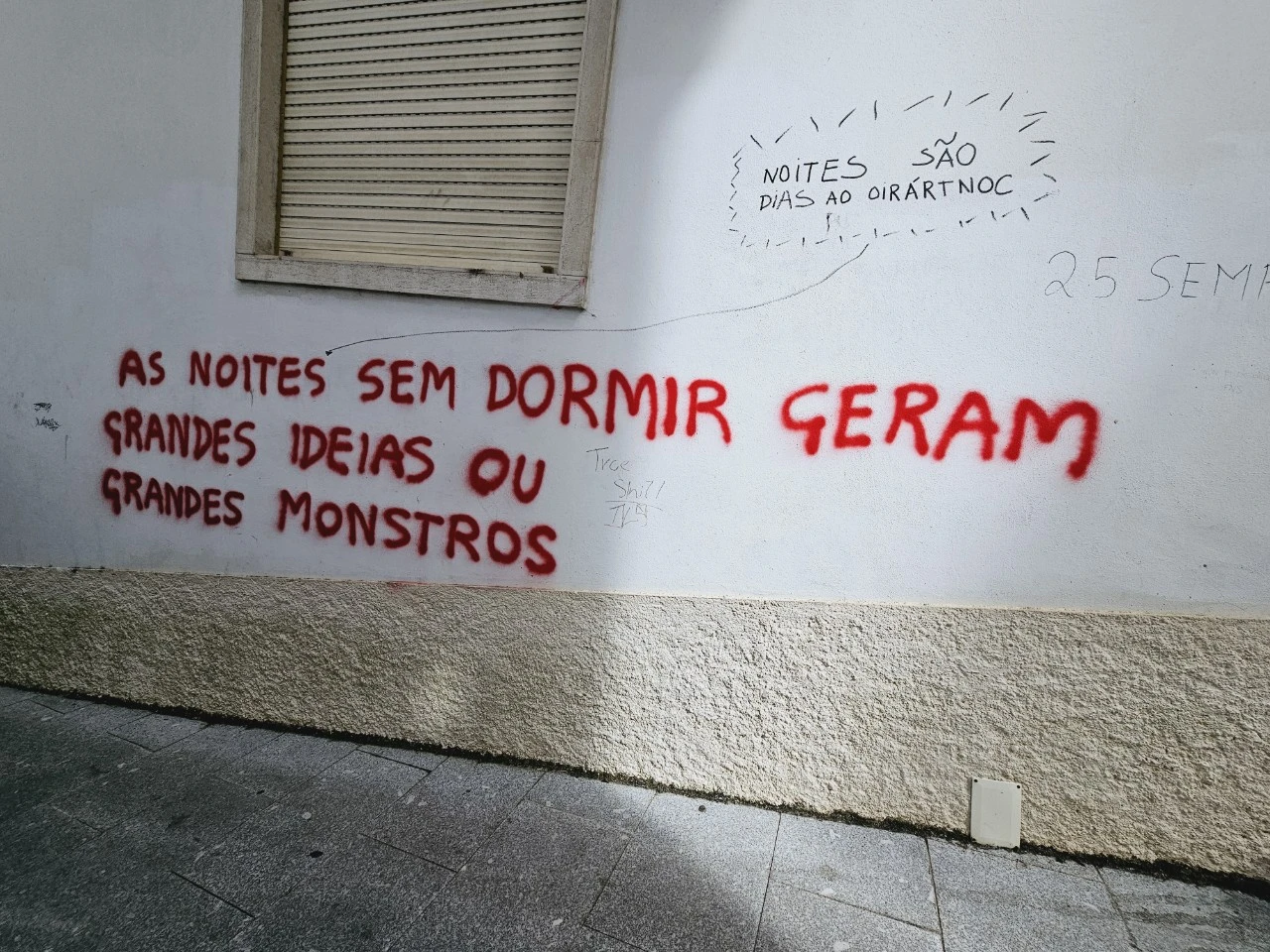 대학을 빠져나오며 좁은 골목길에 들어서니 여기도 대학교답게 학교에 대한 낙서가 벽에 가득하다. 언제 누가 써 놓은 글일까? 낙서 중 이 글귀가 마음에 든다. '잠 못 이루는 밤은 훌륭한 아이디어를 내거나 또는 거대한 괴물을 낳는다.' 잘 번역되었는지는 모르겠다.