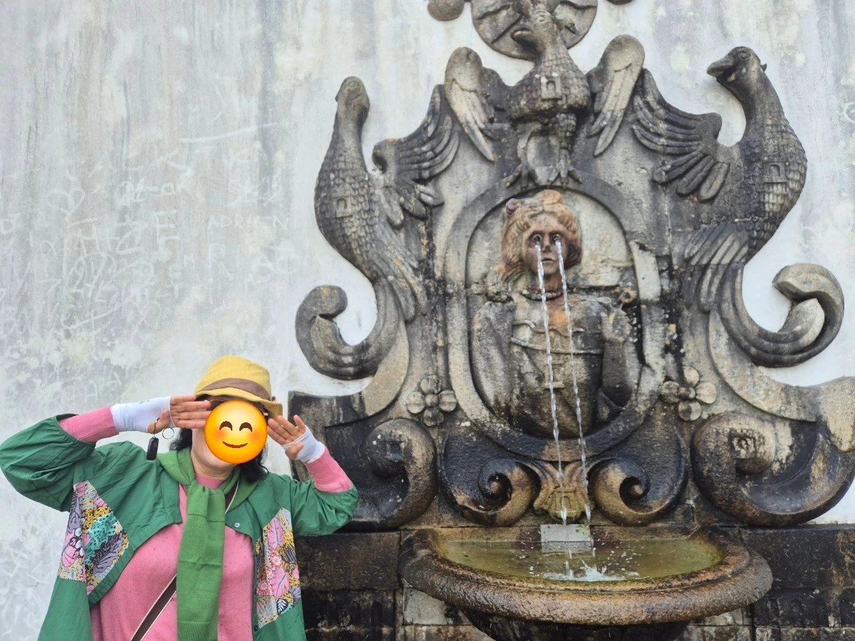 계단을 따라 놓인 다양한 형태의 분수는 신자들의 정화를 상징한다고 한다. 화강암과 하얗게 칠해진 벽등 바로크 양식이 가미된 계단을 순례자들의 발자취를 따라 종교의 의미를 지닌 계단을 한 걸음씩 올라가 본다. 때로는 분수 앞에서 분수의 모습을 흉내 내며 천천히 가톨릭의 정신을 음미하며 정상에 오른다.