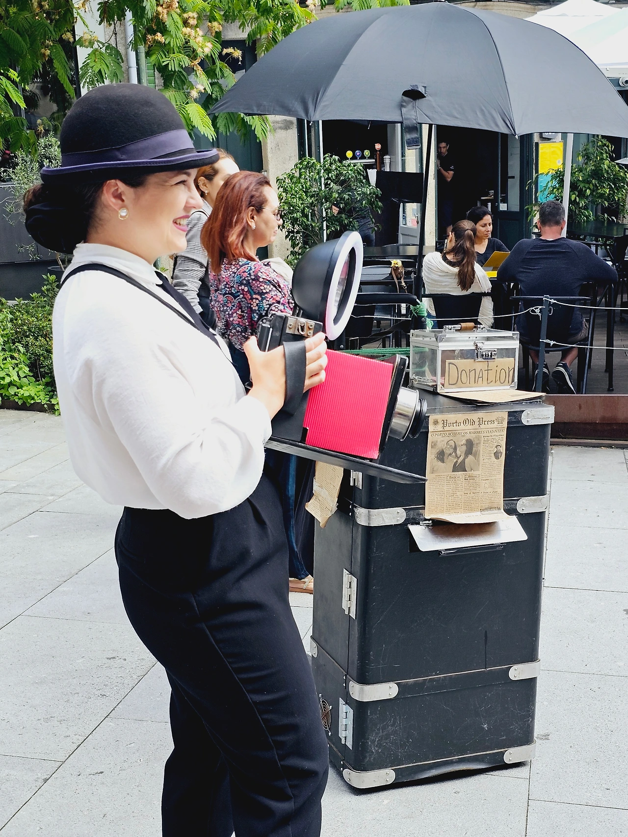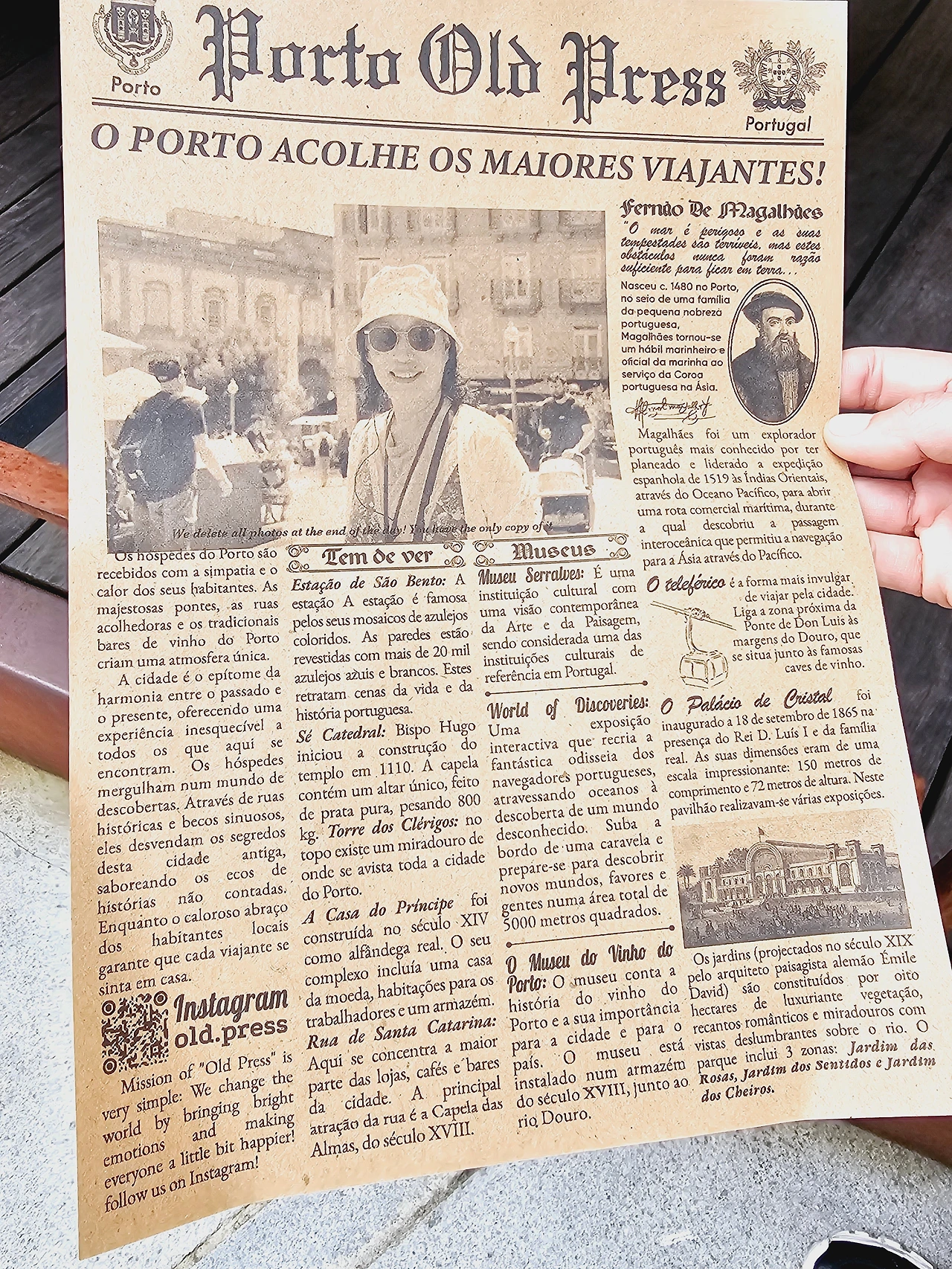 60년대나 나올법한 큰 카메라를 든 멋진 여성은 앞에 서보라고 하며 사진을 찍어준다. 그리고 즉석에서 포루투 옛날 신문에 구 신문답게 흑백으로 사진이 찍힌 얼굴을 내민다. 가던 일행들이 너도나도 사진 찍기 위해 줄을 선다.