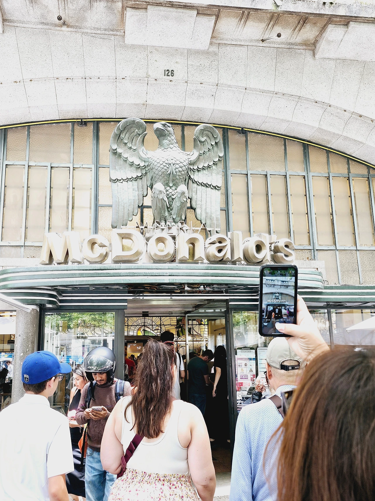 특히 이 지역에 있는 맥도널드는 세계에서 가장 아름다운 매장으로 유명해 잠시 안으로 들어가 구경해 본다. 다른 상업적인 맥도널드와 다르게 벽화가 예쁘게 그려진 맥도널드는 들어가는 입구부터 청동 독수리 동상이 위엄을 자랑하고 있고 안에는 많은 사람들이 햄버거를 먹으며 스테인드 글라스로 들어오는 따스한 햇살 속에서 담소하고 있었다.