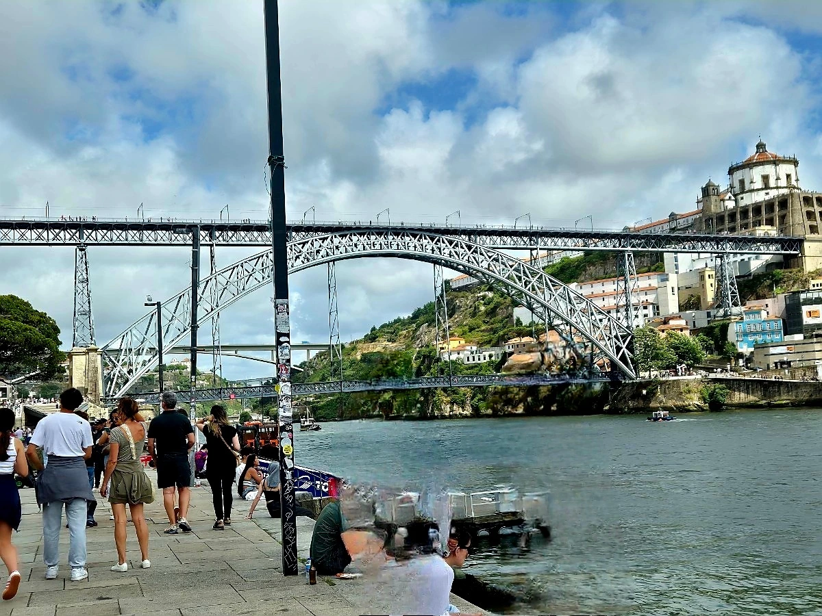 버스에서 내리니 도루강을 따라 장엄하게 펼쳐진 동 루이스 다리(Ponte de D.Luis I)가 눈에들어온다. 동 루이스 다리는 도로와 철도 두 개를 병행하는 다리로 포루투와 빌라 노바 데 가이아 도시 사이를 연결하는 다리다. 1886년 172m로 세워진 다리는 프랑스 건축가 에펠의 제자인 테오필 세이리그가 설계했으며 당시에 세계에서 가장 긴 아치교라고 한다. 도루강 6개의 다리 중에 가장 아름다운 다리로 손꼽힌다. 동 루이스 다리는 2층 구조로 이루어져 있는데 1층은 차량과 보행자, 2층은 전철과 보행자가 이용하도록 설계되어있다.