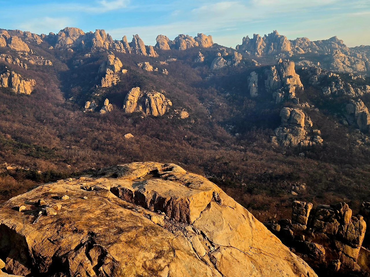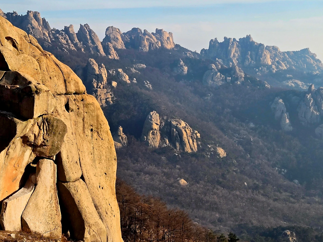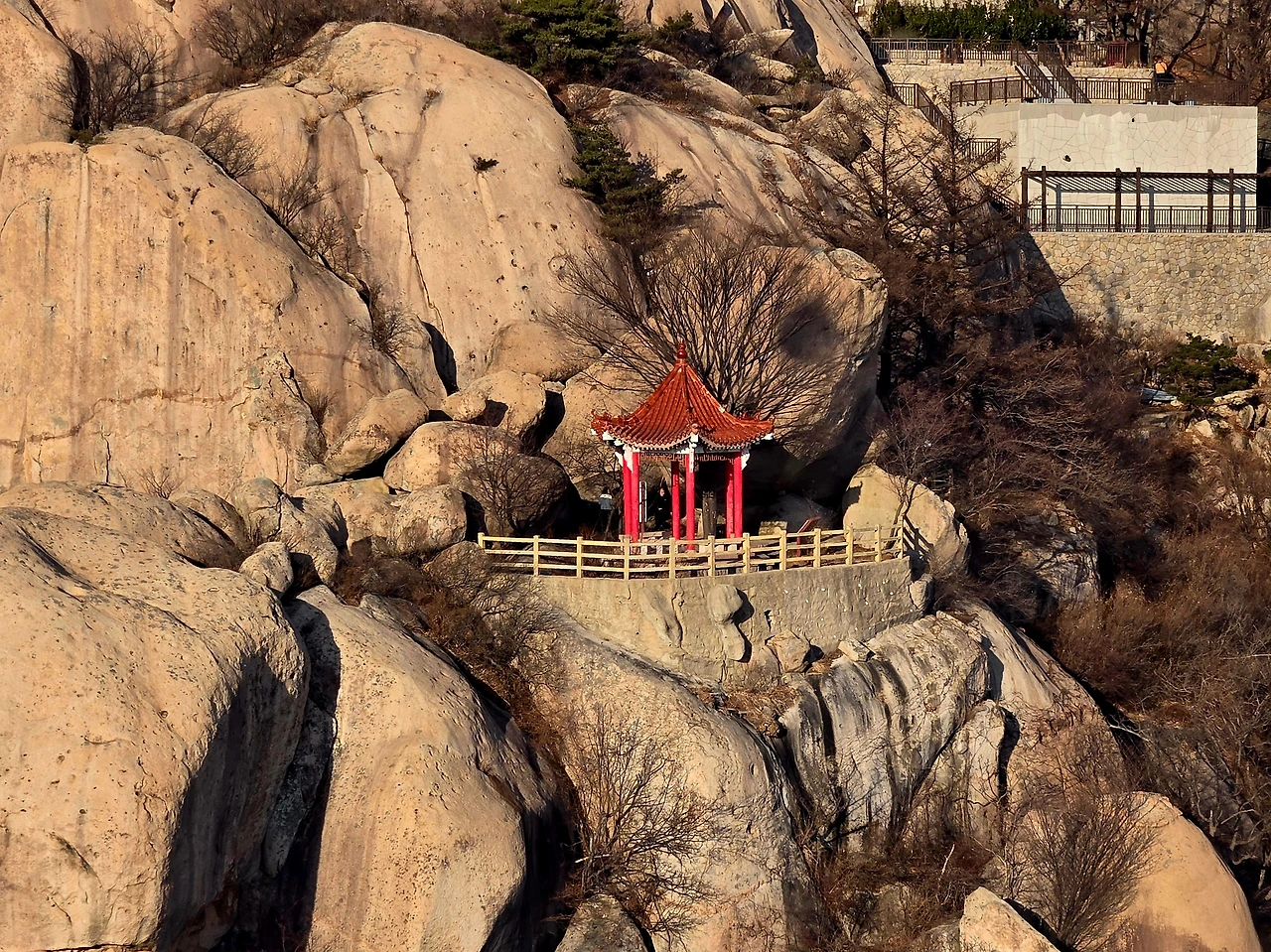 케이블카에 오르자 몇억 년 비바람을 견디어 왔을 바위들이 제각각의 모습으로 노산의 경관을 빛내고 있었다. 지상에서는 도저히 형상되지 않을 바위의 아름다움을 보고, 아마 수억 년 전에 주변 바다의 해수면이 드러나 생기지 않았나 하는 생각마저 들게 했다. 중국은 왜 이런 절경을 가지게 되었을까? 장가계 여행할 때는 손오공이 구름 타고 날아다니고 신선들이 살아있을 것 같은 기운을 보고 감탄하며 우리나라에 없는 산의 신비로움에 질투를 했던 적도 있었다. 중국산을 다녀오면 우리나라 산은 야산처럼 높지도 않고 부드러움을 느끼는 건 나만 그럴까?