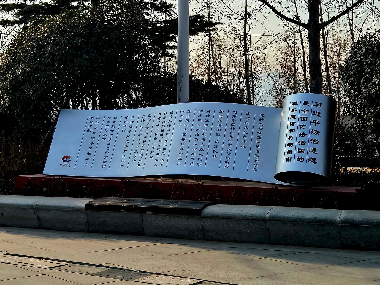 버스에서 내리자 중국의 거대한 땅을 자랑하는 듯 넓은 광장이 펼쳐지며, 노산으로 가는 케이블카를 타기 위한 입구까지도 멀게 느껴진다. 역시 대륙의 땅이라는 것이 실감 난다. 입구로 가는 도중에 현지인들이 공원에서 운동하는 모습도 보이고, 시진핑의 법치사상이 책처럼 펼쳐져 있다. 사람중심 접근방식을 고수하고 중국특색의 사회주의 법치의 길을 견지한다는 내용들이 두루마기 책으로 나열되어 있다. 시진핑은 확실한 사회주의 사상을 곳곳에 설치하여 그들의 사상을 확립하는 것 같다.