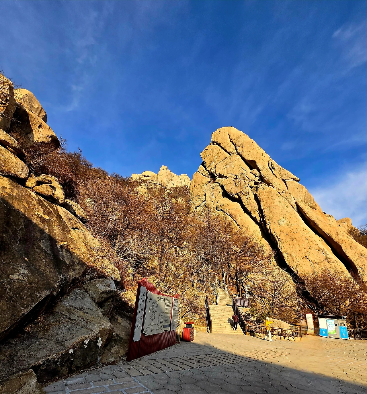 거봉에서 조금 내려가니 카페가 있었다. 녹차를 시키고 주변을 둘러보니 궁금하던 노산의 탄생이 액자로 걸려있었다. 노산은 백악기 후기에 잦은 지하 화산활동으로 인해 지각 깊은 곳에서 뜨거운 마그마가 응결되어 결정화되어 형성되었다고 한다. 즉 이곳은 빙하잔해의 일부라는 것이다. 따라서 이곳은 빙하활동의 유물을 탐험하기에 좋은 장소라고 한다. 아는 만큼 보인다고 했던가? 나의 시선이 새로워지는 느낌으로 다시 한번 이 명산을 바라본다.
