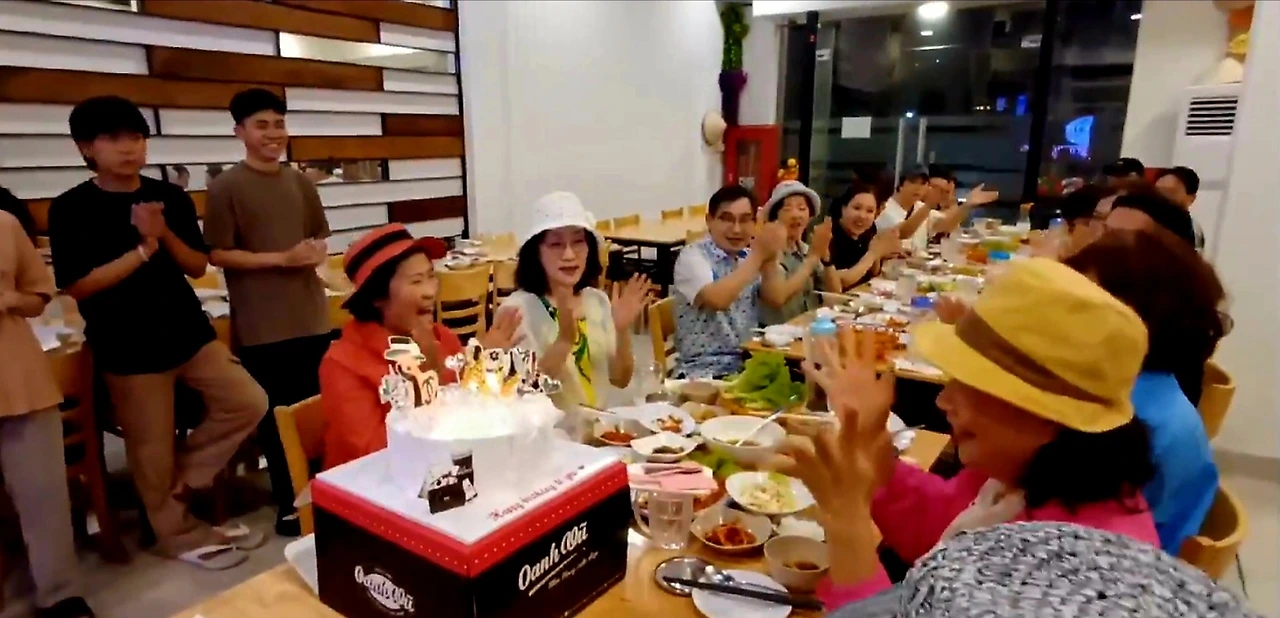 관광 후 저녁식사시간에 가이드가 갑자기 큰 케이크를 들고 나온다. 내가 저녁에 한잔하려고 말해두었던 생일이란 말을 기억했나 보다. 한국에서도 받아보지 못한 커다란 상자 안에 큰 케이크를 선물해 주었다. 토핑처럼 케이크 위에 멋진 여자사진과 왕관을 비롯한 여러 장식 소품들의 베트남 케이크를 보는 순간 너무 감동적이었다. 전혀 예상하지 못했는데 저녁을 먹은 후 식당에 모인 사람들이 같은 일행이 아닌데도 모두 박수를 치며 생일 노래를 불러주어 더 감동적이었다. 패키지로 처음 만난 가이드가 차려주는 따뜻함에 더 감사한 마음이 들었다.
