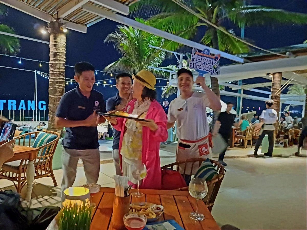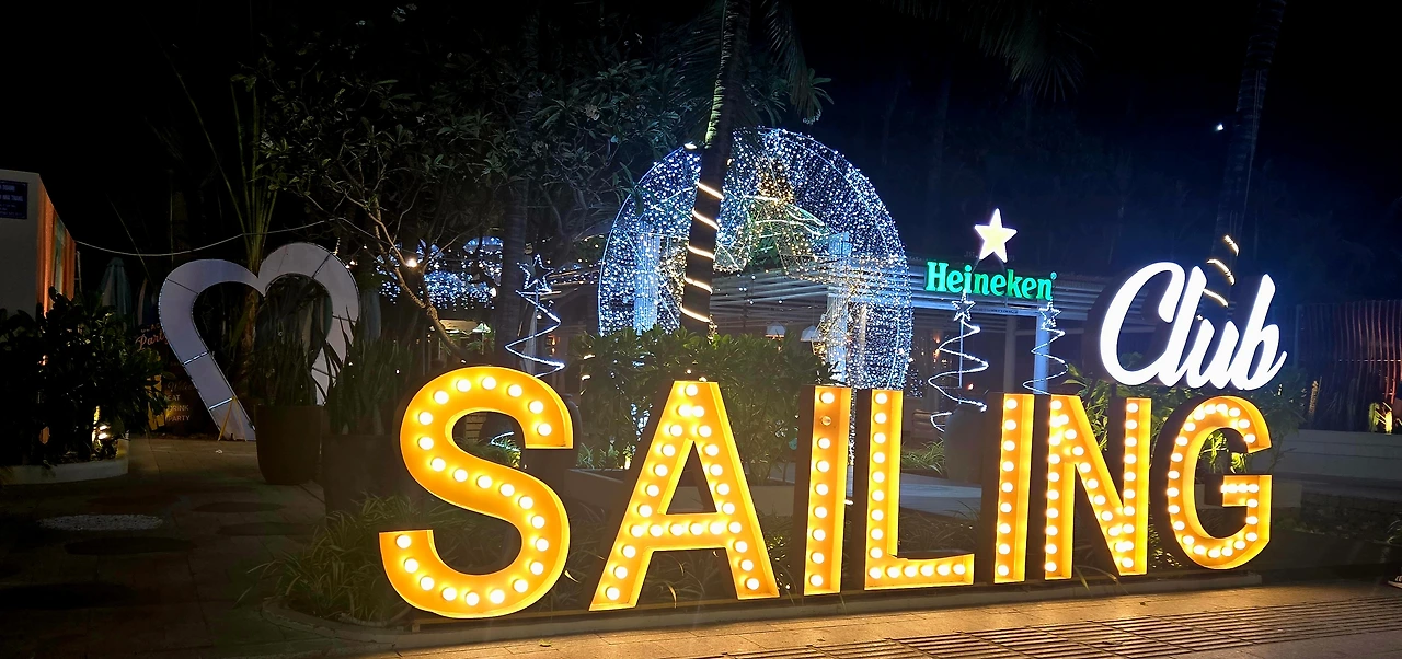 식사 후 우리는 생일을 축하하기 위해 분위기 좋은 sailing club으로 장소를 옮겼다. 가이드는 현지가이드인 Peter를 우리 일행에게 안내를 부탁해 주었다. 피터가 안내한 장소는 바다를 배경으로 나트랑의 글자가 불빛으로 반짝이는 로맨틱한 장소였다. 간단한 칵테일을 주문하는 것을 도와주고 매니저를 불러 택시 잡을 때 부탁하라고 우리를 소개해준 뒤에 떠났다.