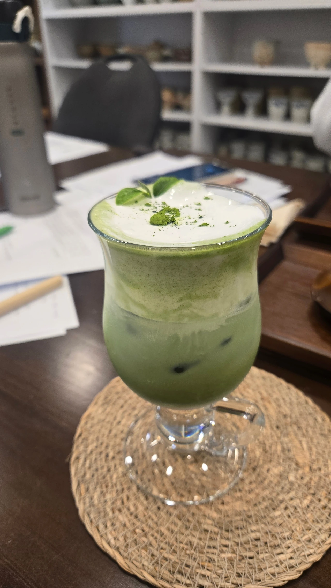 아이스 말차는 녹차에서 보지 못한 거품이 위에 떠있어 신기했다. 이 거품이 우리가 아는 사포닌 성분이다. 녹차보다 조금 더 진하고 고소한 향이 혀를 적신다.