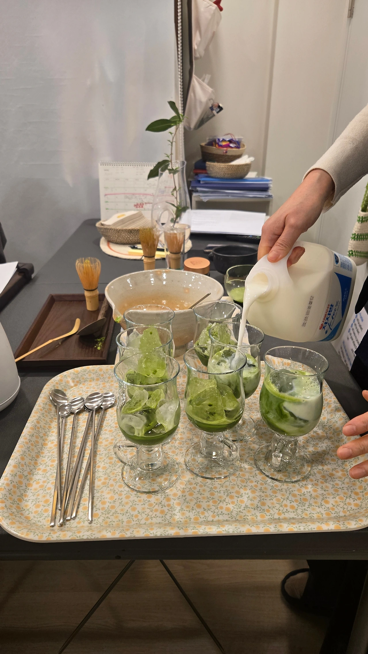 항상 과유불급(過猶不及)이란 말이 있듯이 이 말차는 하루 1-2잔 정도 마시면 건강 슈퍼푸드이다. 말차를 각자의 입맛에 맞게 이용하는 것도 좋을 것 같다. 가장 손쉽게 이용할 수 있는 것은 말차 가루를 따뜻한 물에 푼 뒤, 따뜻한 우유를 추가하고 꿀이나 바닐라 시럽으로 맛을 내는 말차라테이다. 녹색 가루를 저으면서 연둣빛 거품이 올라오는 모습은 차를 우려내는 것과 다른 조용한 기쁨을 주었다.