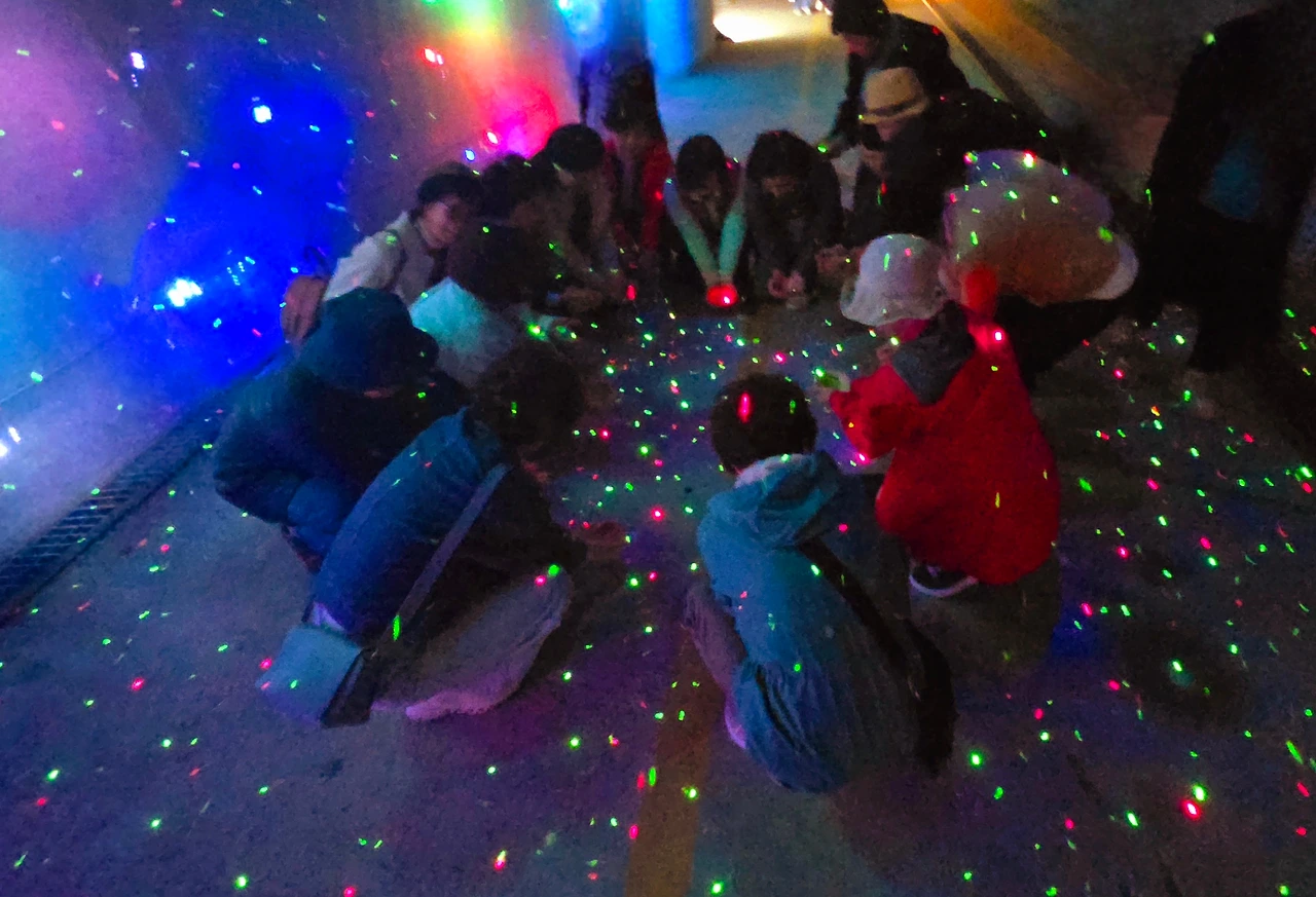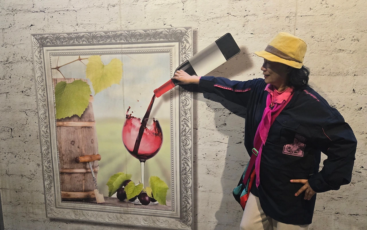 형광 불빛아래서 해설사의 노련한 말솜씨와 사진기술로 우리는 동심으로 돌아가 반짝이는 별들을 손에 잡아보고 머루포도로 장식한 농장의 포토존에서 폼을 잡으며 마음껏 즐겼다. 반딧불처럼 날아다니는 형광물질을 잡으며, 깔깔거리고 웃었던 어린 시절로 돌아가기도 하고 연인처럼 서로를 마주하며 별밤의 분위기에도 취해본다.