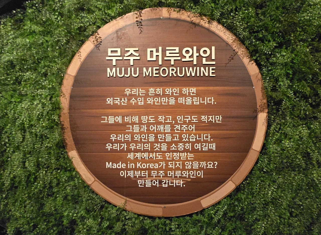 무주 머루 와인 동굴은 원래 무주 수양발전소 건설 당시 굴착 작업용 터널로 사용되던 곳인데 무주군이 리모델링하면서 오늘날의 와인 동굴이 탄생했다고 한다. 이 동굴은 내부가 일정한 온도를 유지할 수 있어 머루 와인 숙성에 최적의 환경을 제공하는데 깊고 풍부한 맛과 향이 특징이다. 머루는 일반 포도보다 당도가 높고, 폴리페놀과 항산화 성분이 풍부하여 건강에도 좋은 영향을 주며 와인동굴은 일정한 온도(13~15℃)를 유지하여 최적의 숙성 환경을 제공한다고 한다.
