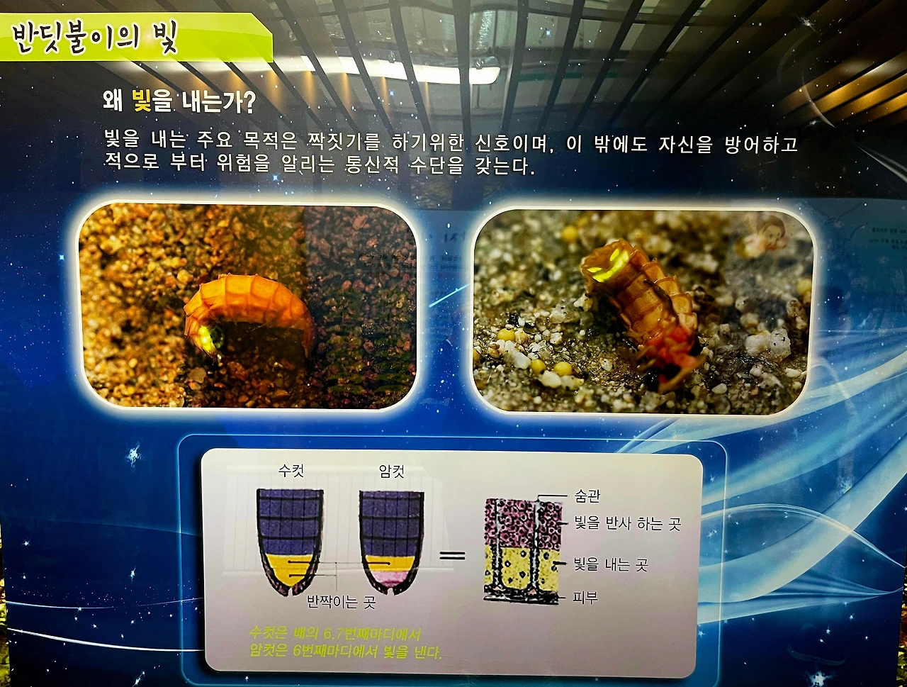 반딧불이는 루시페린이라는 물질과 루시페레이스라는 효소를 이용해 산소와 반응하여 빛을 내는데 이 과정에서 열이 거의 발생하지 않는 냉광이 생성되며, 매우 효율적인 에너지 변환이 이루어진다고 한다. 반딧불이의 빛은 단순한 장식이 아니라 생존과 번식에 중요한 역할을 한다. 수컷 반딧불이는 짝을 찾기 위해 또는 자신을 방어하기 위해 빛을 깜빡이며 발광한다는 사실도 흥미로웠다.