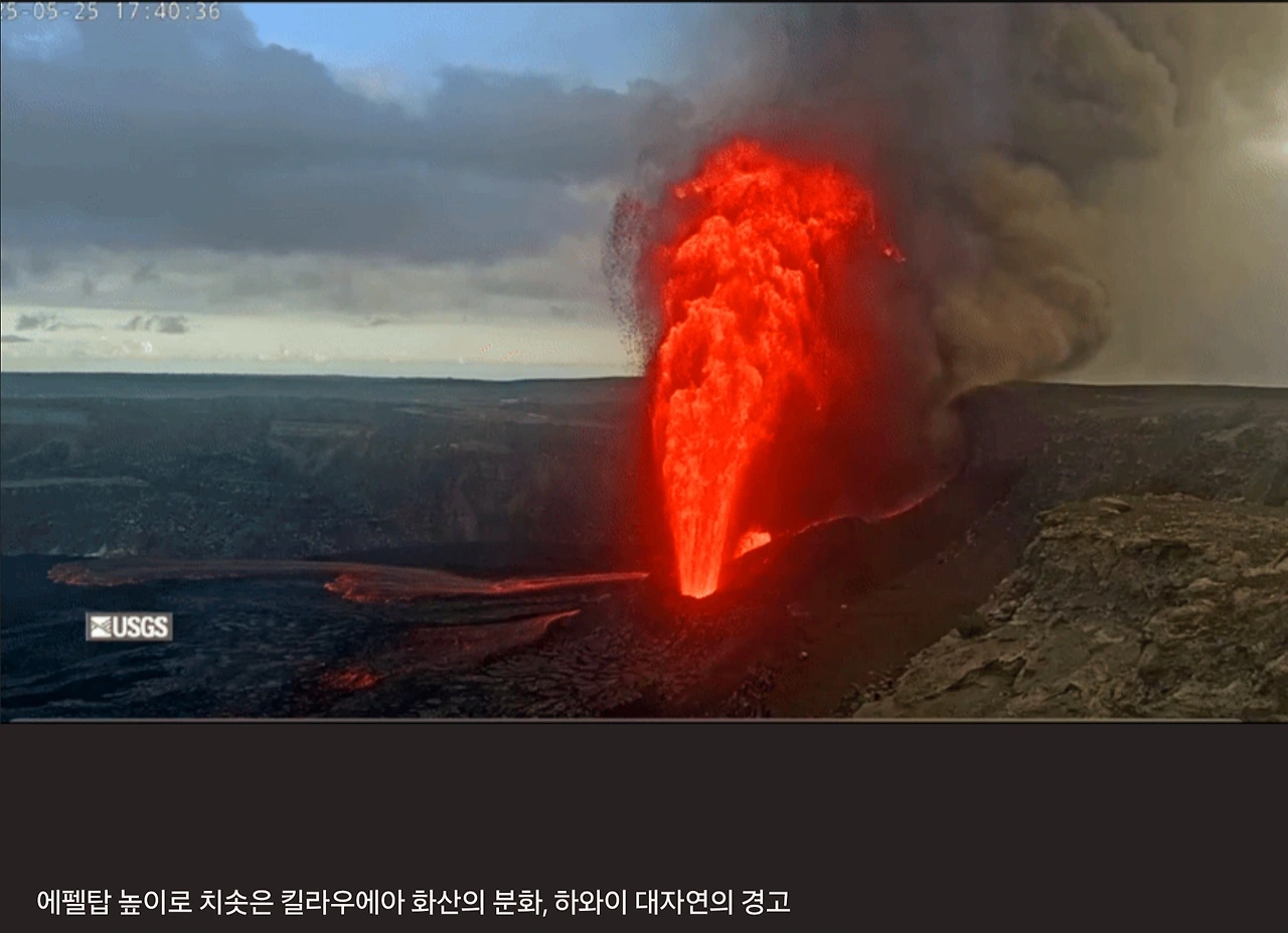 2025년 5월 25일 하와이 빅아일랜드의 킬라우에야 화산이 역대 가장 큰 폭발을 일으켰다는 기사를 읽고 깜짝 놀랐다. 작년 10월에 빅아일랜드의 이 화산을 보고 온 나는 "용암 높이 300m"이자 23번째 화산 분화로 역대 가장 큰 규모라고 하는 이 기사를 읽고 연기만 흘러나오던 그 평온한 화산이 용암을 분출했다는 사실이 믿기지 않았다. 이번 분출이 큰 화재가 된 것은 바로 용암 분출 높이 때문이다. 이는 에펠탑(324m)과 거의 맞먹는 수준으로 6시간 동안 지속되었으며 화산재와 유독 가스가 하늘로 1,500m까지 날아갔다고 하니 위력을 짐작할만하다.