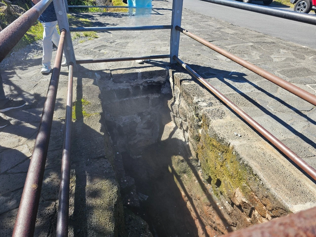 활화산이라는 것을 느낄 수 있는 곳은, 도로 중간의 구멍에서 새어 나오는 뜨거운 연기가 나오는 곳이었다. 그곳을 지나가려니 너무 뜨거워 얼굴을 가려야 했다.