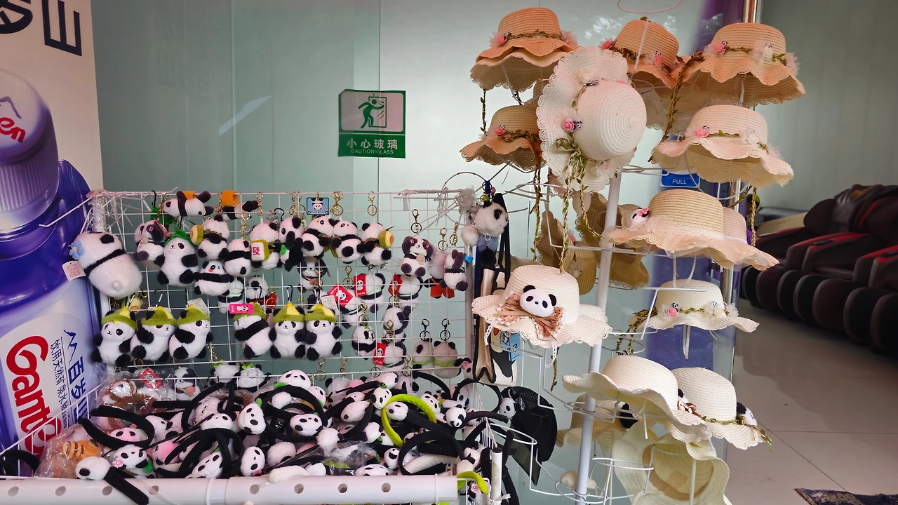사육장 옆으로 긴 산책로가 있어 시간 여유가 있다면 산책하고 싶었지만 잠자는 판다의 엉덩이만 본채 우리 일행은 빠져나와 길거리에 죽 늘어선 판다인형 상점들을 보며 아쉬움을 달래야 했다.