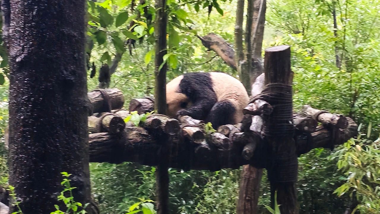 비 오는 풍경 속에서 판다가 자는 덕분에 웅크리고 잠든 판다만 보았지만 나름 새로운 광경이어서 흥미로웠다.