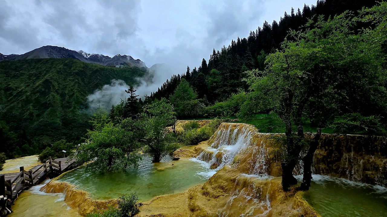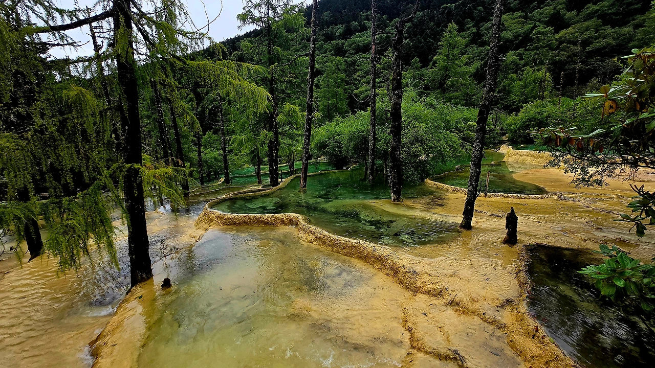 구채구(중국말은 주자이거우)는 맑은 신비의 물빛 판타지였다면 황룽은 노란 용의 등 위에 펼쳐진 자연이 빚은 거대한 색채 팔레트를 맛본 것 같다. 해발 3,576m, 세계에서 가장 규모가 큰 고산 다색 석방 연못으로 약 693개 연못이 자연 분재처럼 각각의 색채로 이루어져 1992년 유네스코 세계자연유산으로 등재된 이곳은 글을 쓰는 지금도 그 예쁜 색채가 눈앞에 아른거린다. 가을에도 이 아름다운 풍광을 보고 싶지만 무리한 욕심이리라 생각하며 아쉬운 발걸음을 옮긴다.