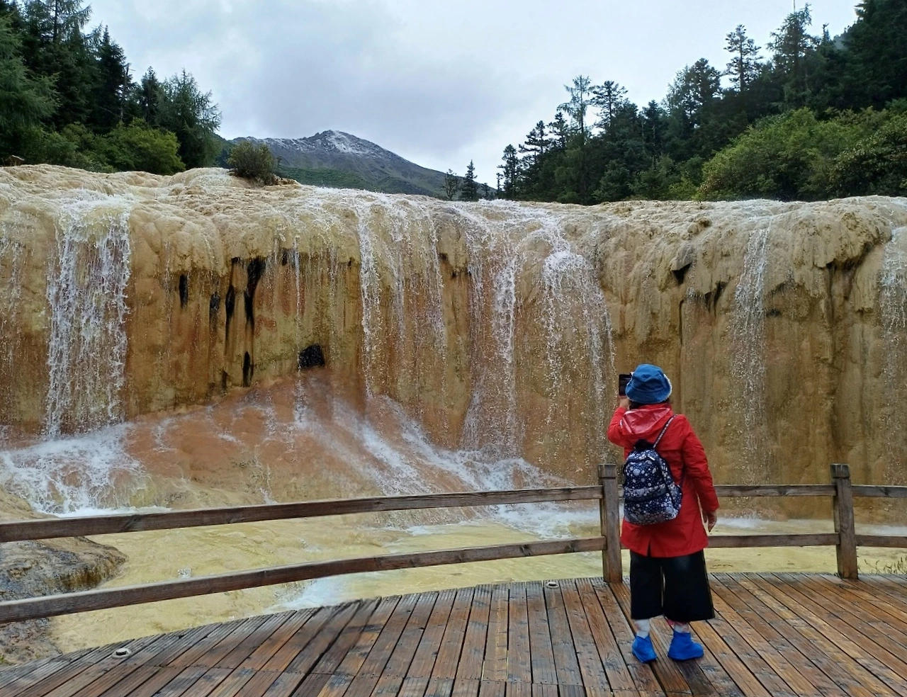 다행히 내려오는 길에는 비가 그쳐서 운무가 지나가면서 산의 형태가 드러나는 아름다운 모습과 흘러내리는 물줄기가 햇빛에 반사되어 황금빛 모래가 흐르는 듯 보이는 진사폭포(金沙瀑布, Golden Sand Waterfall) 등에서 화룽을 만끽할 수 있었다.