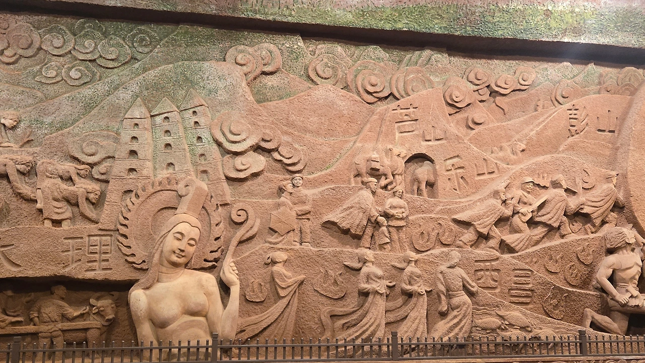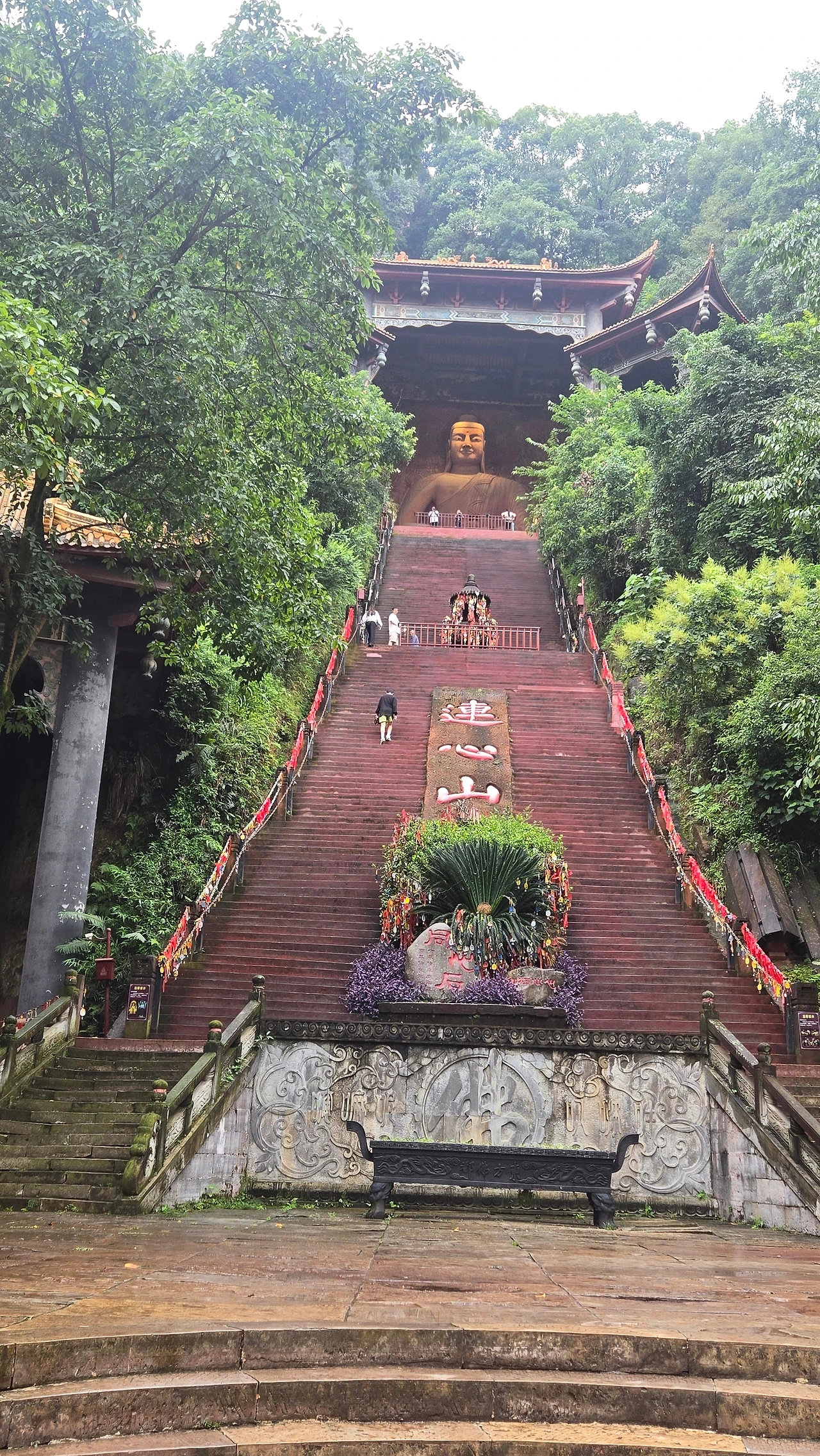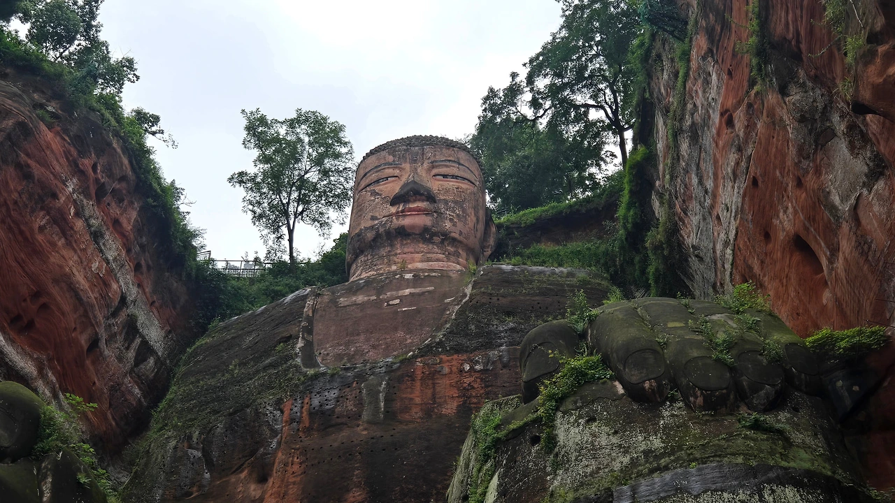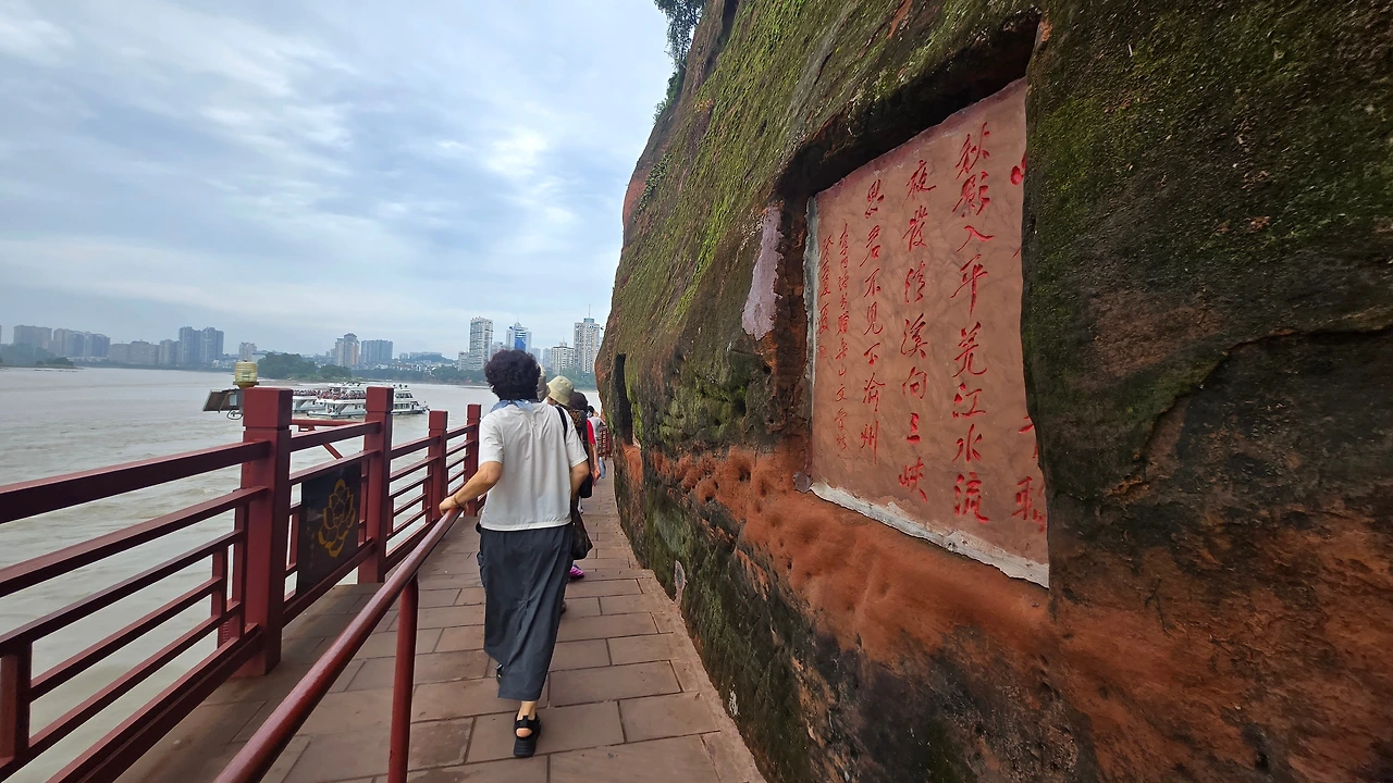 동굴에서 나와 오늘의 하이라이트인 낙산대불을 보기 위해 계단을 내려간다. 락산대불이 만들어진 계기도 흥미로웠다. 이 지역은 민강·청이 강·대도하 세 강이 만나는 지역으로 비가 많이 와 홍수가 범람하였다고 한다. 그래서 해통 스님이 이 홍수를 막기 위해 당나라 713년 절벽을 깎기 시작하여 90년의 공사를 거쳐 803년에 완성되었다고 한다.