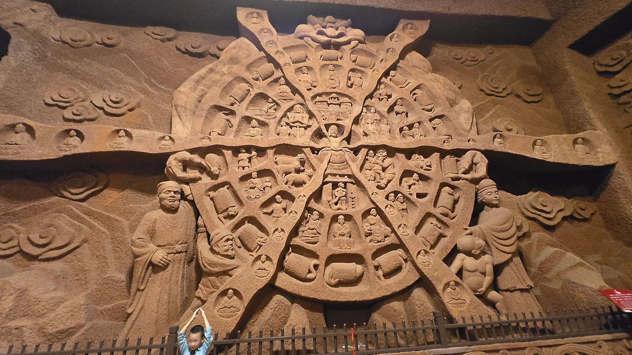 길이 700m에 달하는 동굴로 들어서자 다양한 크기의 불상과 벽면과 천장에 수많은 불상이 새겨져 있어 이름 그대로 “만불동(만 개의 불상)”이라 불리는 동굴 안으로 들어서니 마치 기독교의 성서를 해석하는 과정을 보듯 다양한 부처들이 눈에 들어온다. 유혹하는 여인들 앞에서도 수행하는 모습의 부처 조각상도 인상적이고 51m의 병을 고쳐주는 부처 약사여래, 자연 암석을 깎아 만든 높이 33m의 석가모니 좌불상, 우아한 자세와 온화한 미소를 지닌 9m 높이의 관세음보살 상이 인상적이었다.