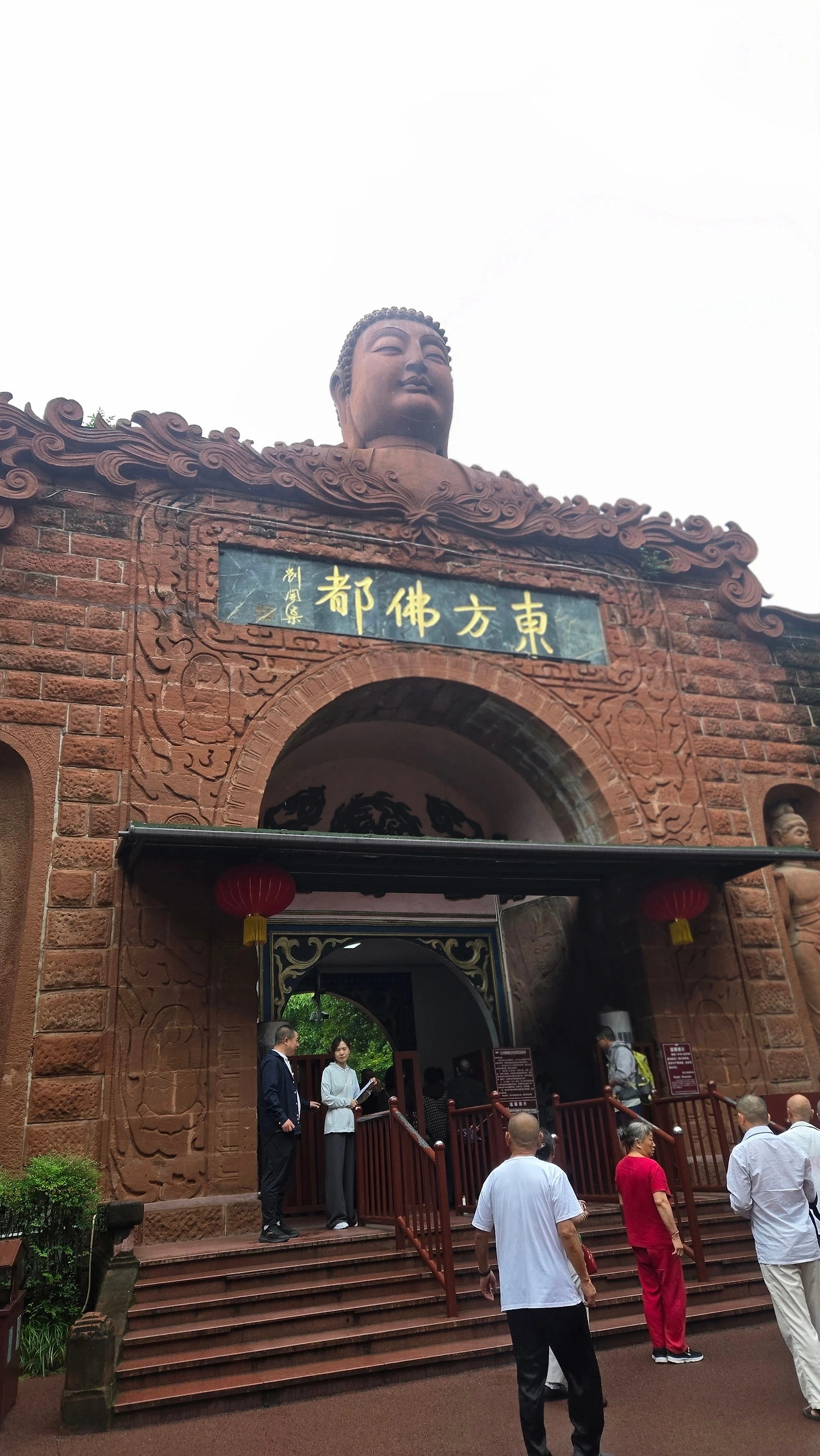 동방불도 / 东方佛都 (Oriental Buddha Capital)는 중국 쓰촨성(四川省) 레산(乐山, Leshan) 시에 위치해 있으며 1994년 5월에 개방된 최신 인공으로 만든 불교조각 예술품들이 있는 곳이다. 즉 고대 석굴석각 양식과 전통을 본떠 “복원(復古)” 및 “재현(重建)”한 테마정원이다. 그러나 산 전체 일부를 와불의 몸으로 삼은 170m 와불의 웅장한 규모나, 긴 동굴 통로 양쪽에 조각된 수많은 불상들이 있는 만불동 지하궁전의 압도적인 규모는 중국의 대국의 면모를 여실히 보여주고 있는 듯하다. 산 전체를 뒤에 배경으로 누워있는 거대한 와불상은 현대의 기술과 예술가의 손길로 ‘전통석굴석불의 감성’과 ‘새로운 시각적 감동’을 주는 장소이다. 자연과 인간의 조화가 어우러져 신비로운 종교의 세게를 보여주는 듯하다.