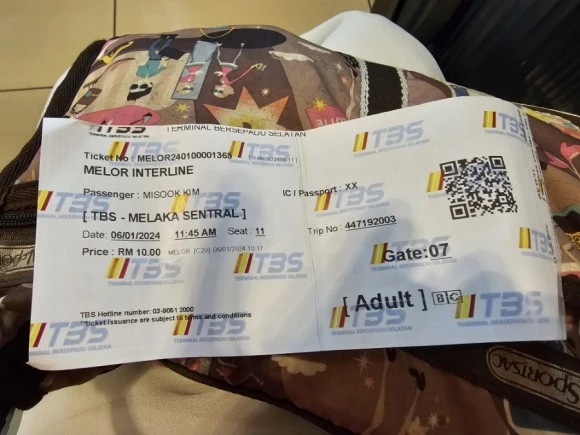 오늘은 쿠알라 품 푸르에서 벗어나 1주일간 말라카에 있을 예정이다. 아침 일찍 일어나 TBS 터미널로 그랩(17링깃)을 타고 이동했다. 터미널에 도착해 인포메이션 가니 창구에서 티켓 바꾸란다