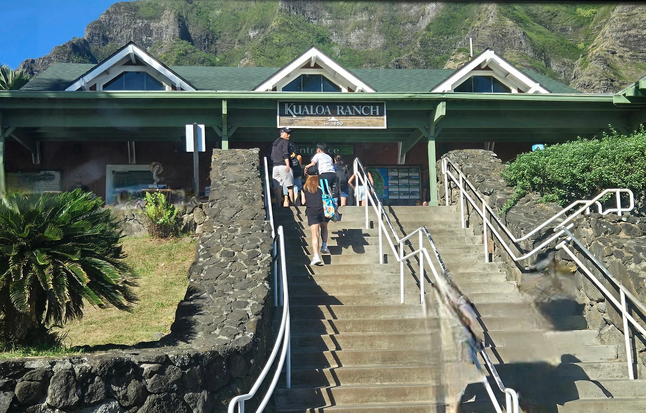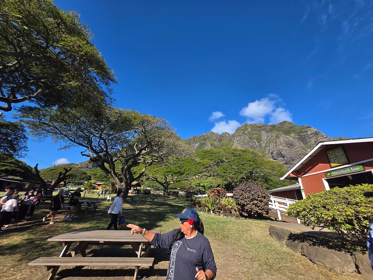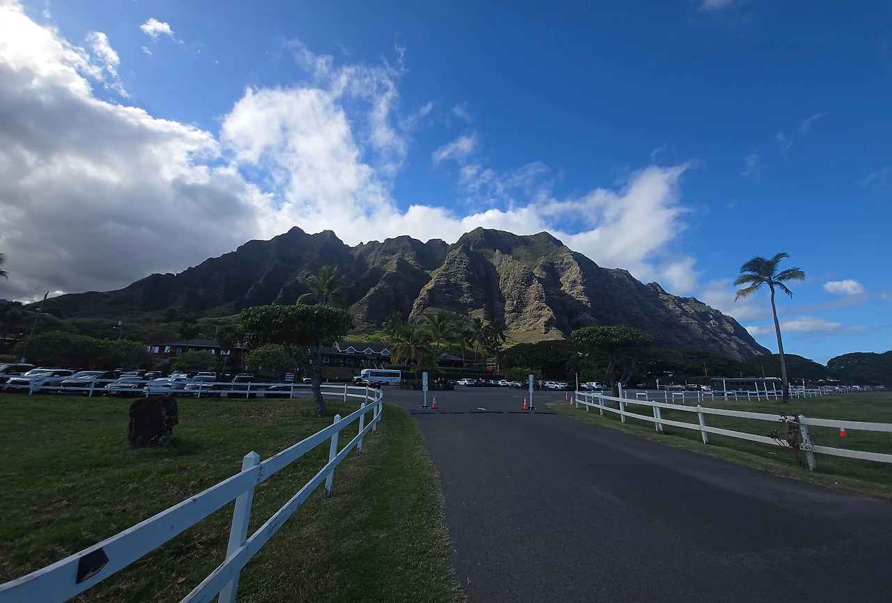 오늘은 쥬라기공원 배경지인 쿠알로아 랜치(Kualoa Ranch) 무비사이트 투어를 하기 위해 아침 일찍 길을 나선다. 뚜벅이인 나는 구글맵에 의존해 다니는데 하필이면 아침부터 와이파이가 되지 않는다. 일단 숙소에서 보았던 버스에 올라탔으나 몇 정거장까지 가는지 몰라 짐작으로 내렸다. 내가 알고 있던 익숙한 거리라 생각했는데 한 번도 보지 못한 길에 들어선다. 일단 해변 쪽인 서쪽을 향해 걷다가 핸드폰을 작동시키니 다행히 길안내가 시작되어 무사히 목적지에 도착한다. 조금 기다리자 쿠알로아 랜치 차량이 도착해 외국인 5명과 나를 태우고 1시간 20분쯤 달린다. 한국여행사에 예약해서 한국인들일줄 알았으나 전부 외국인이었다.