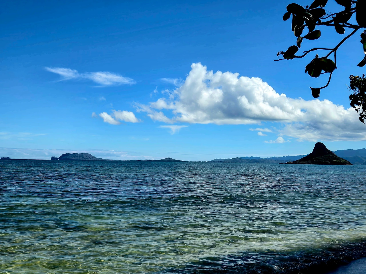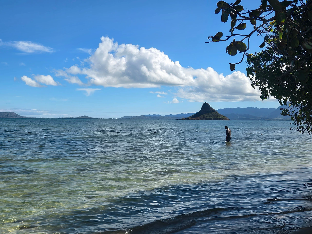 돌아가는 시간을 여유 있게 해서 바닷가로 향한다. 내가 따로 가고 싶었던 섬이 바로 눈앞에 있었다. 전통적인 중국모자와 닮은 원뿔형 때문에 "Chinaman's Hat"라는 별명으로 유명한 모콜리이섬(Mokolii Island)은 카네오헤 만에 위치해 있다. 모콜리 전설에 등장하는 작은 도마뱀을 이름을 따서 이름을 지어진 이 섬이 청명한 바다 위에 우뚝 서있어서 쿠알로아 랜치의 어느 곳에서나 볼 수 있는 아름다운 섬이다. 오바마대통령 부인이 배경으로 찍은 사진이 있어 다시 한번 더 돌아보게 하였다.