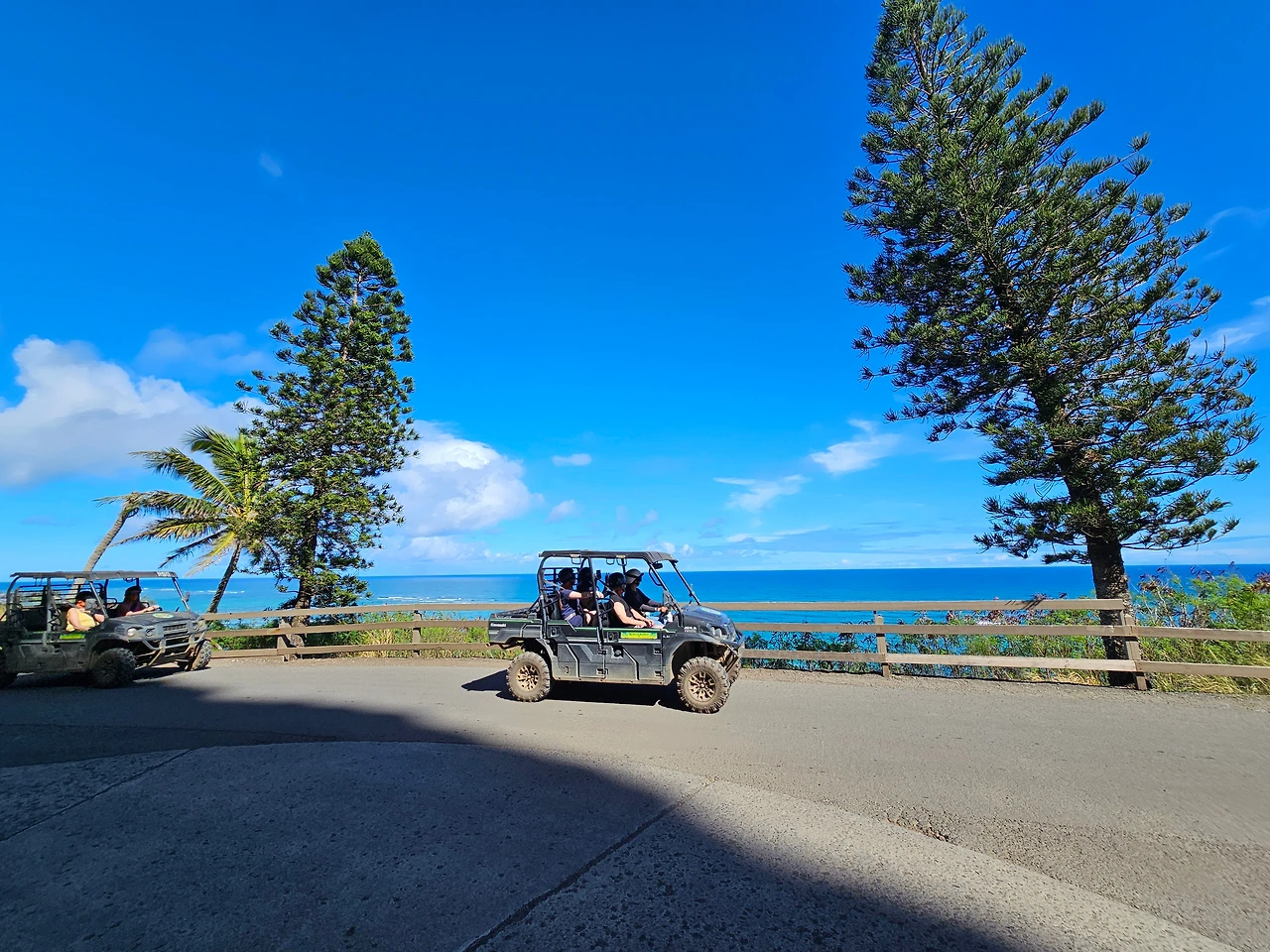 마치 영화 속 다른 세계 속으로 들어온 기분이다. "쥬라기공원" "쥬라기 월드""첫 키스만 100번째"등 기억할 수 없을 정도의 많은 영화배경지가 된 쿠알로아 랜치는 하와이의 바다만 보다가 갑자기 다른 세계로 들어온듯한 느낌이다. 옆에 앉은 캐나다 여자는 젤리를 건네주며 말을 건네온다. 한국에서 왔다고 하니 얼마나 걸리느냐며 호기심을 보내온다. 가끔 낯설기는 하지만 이런 호의도 나쁘지 않다. 짧은 90분이 순식간에 지나가며 여운을 남긴다.