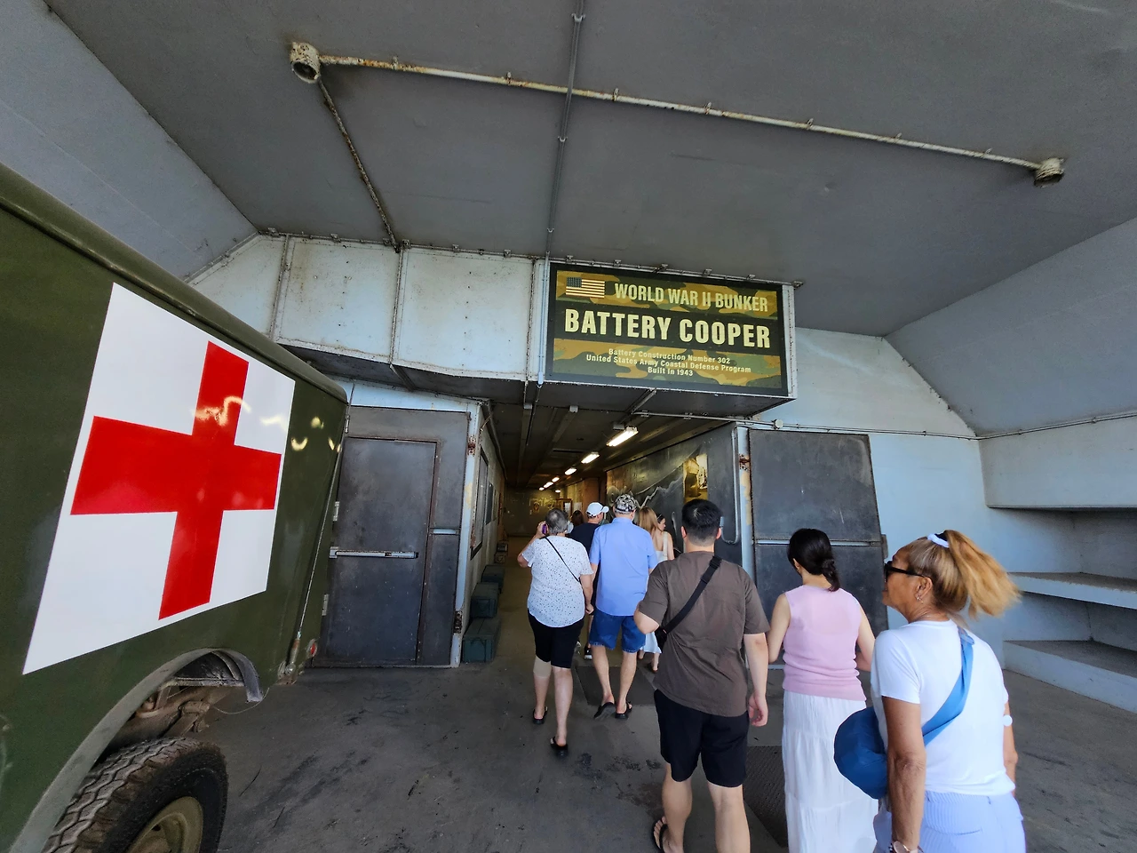 2곳에서 지프차가 멈춰 사진 찍을 시간을 주었다. 그중 한 곳은 방공호를 이용해 영화를 소개하는 곳이었다. 다양한 영화들이 벽에 배우들과 더불어 곳곳에 있으며 마지막은 쥬라기 공원의 공룡들의 울음소리로 동굴을 빠져나오니 앞에 광활한 바다가 그림처럼 펼쳐진다.