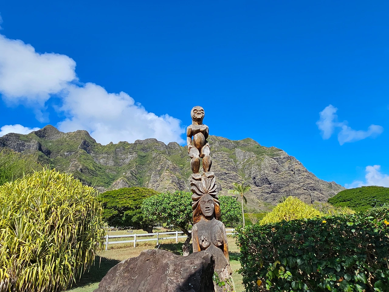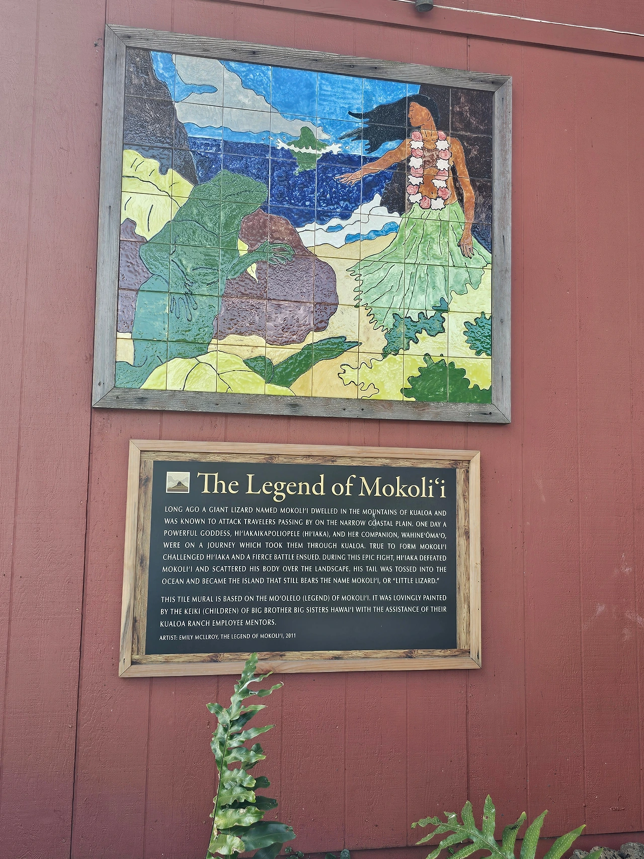 옛날 하와이사회에서 쿠알로아는 왕족의 거쳐이자 전통을 배우고 피난처역할을 하는 장소였다고 한다. 들어서자마자 모콜리라는 도마뱀을 물리친 여신의 내용을 그린 모콜리이의 전설을 전하는 벽화가 눈에 보인다.