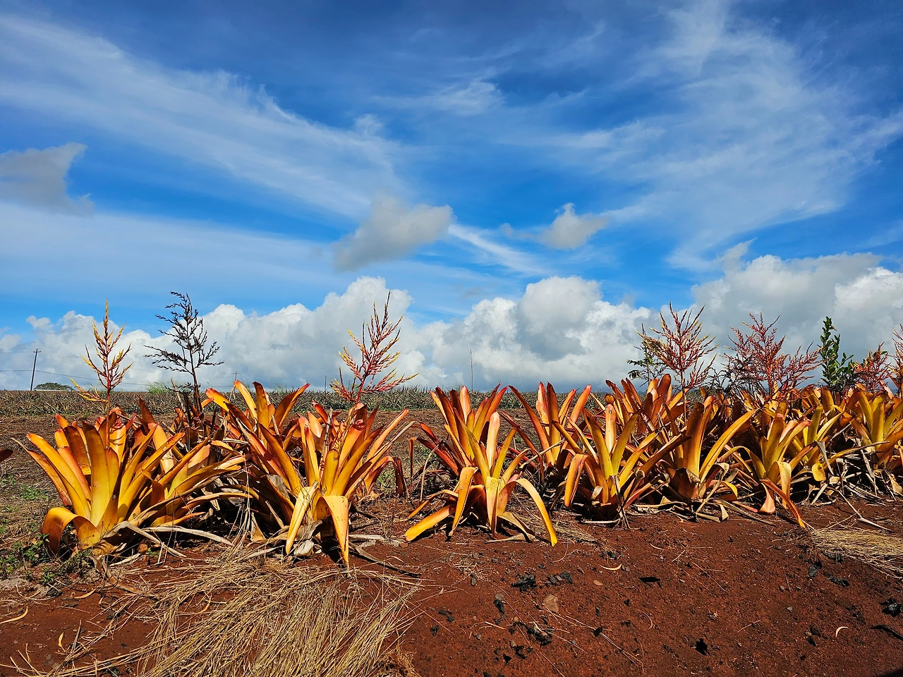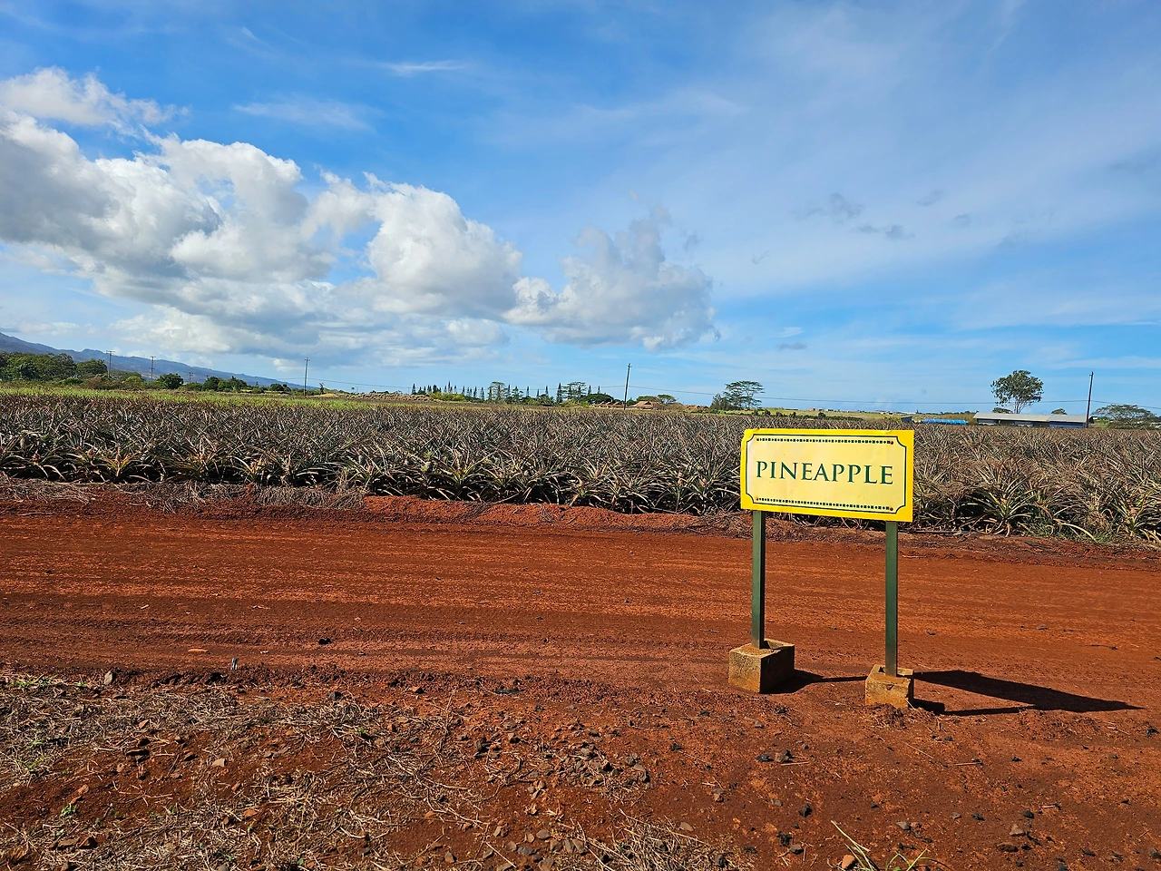 그러나 기대한 파인애플 투어는 실망이었다. 광활한 대지에 겨울이라 그런지 파인애플은 소규모로 조금 매달려있는 모습이고 스쳐 지나가는 다른 작물의 밭도 표지판에 표시된 곳에 소량만 보이지 풍성함을 기대할 수 없었다. 다만 눈에 보이는 것은 허허벌판 대지의 광활함과 하늘이었다.