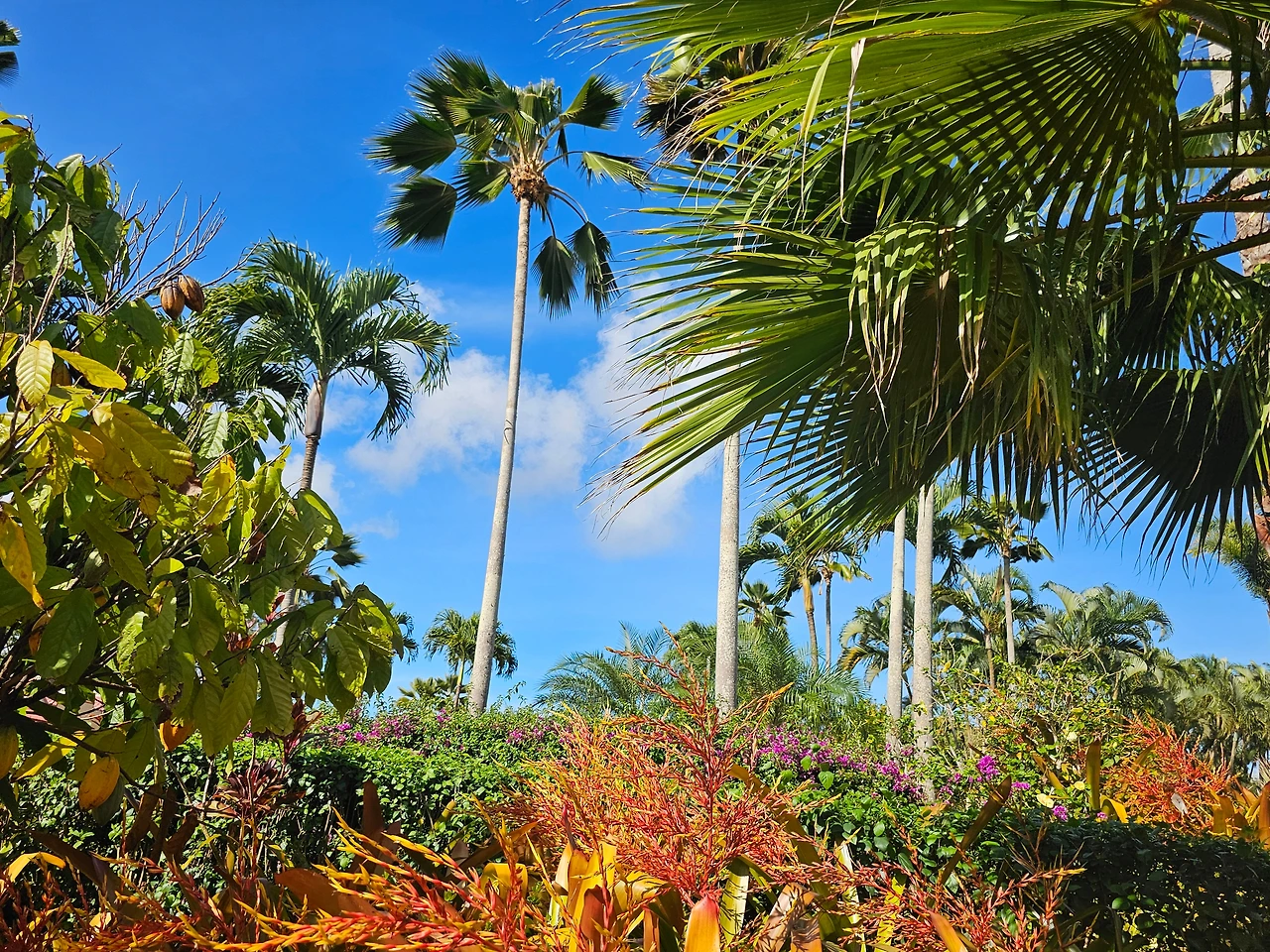 자유여행의 좋은 점은 조급하지 않고 한 장소를 마음껏 구경할 수 있다는 것이다. 야외 의자에 앉아 큰 야자수를 바라보며 하늘을 보는 것도 좋고 정원 안의 호수에 비친 야자수 모습을 오랫동안 볼 수 있어서도 좋았다.