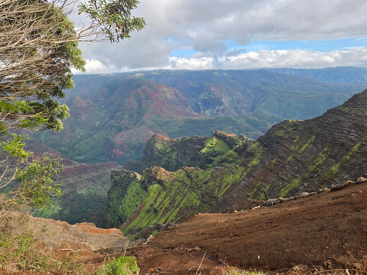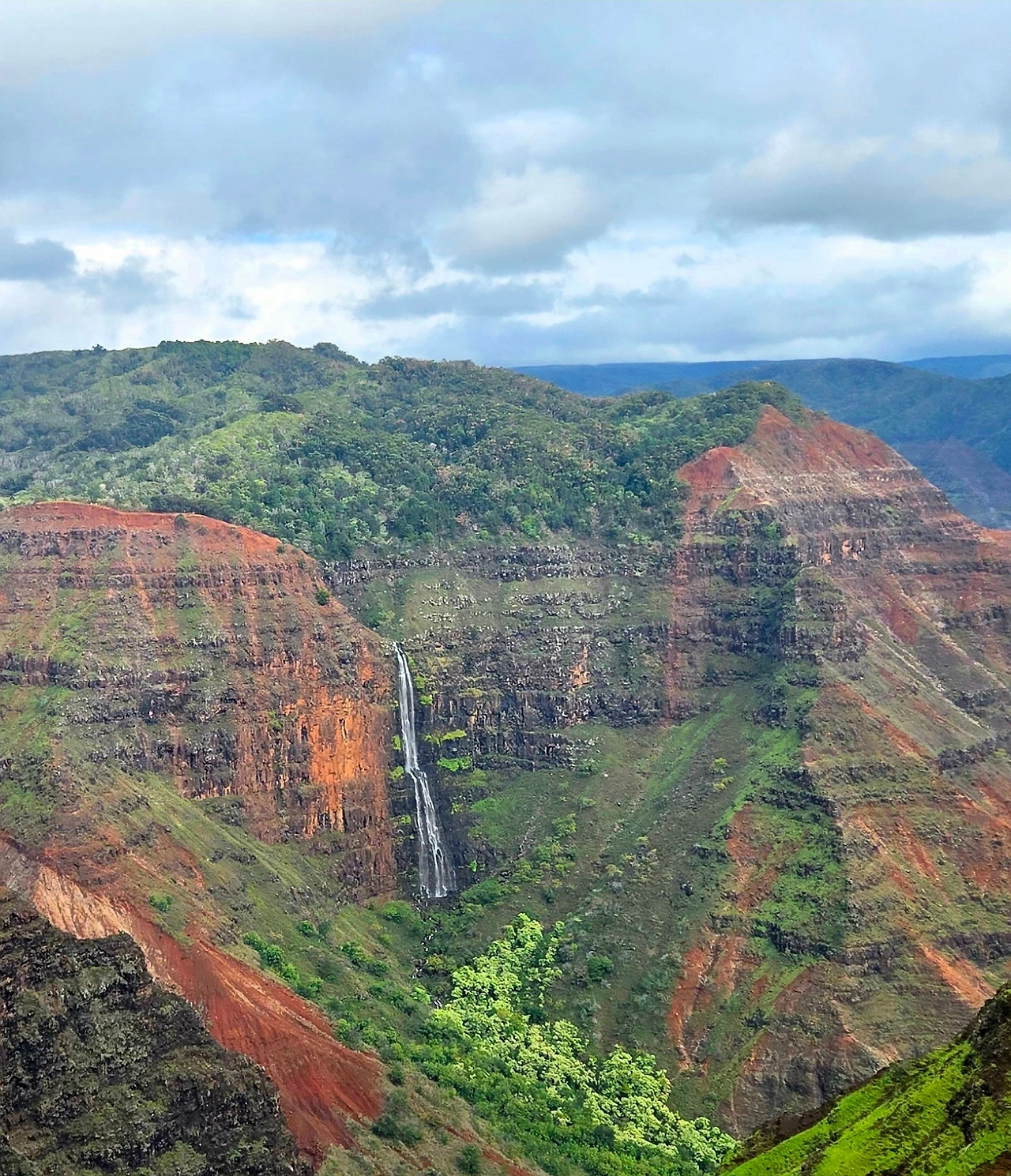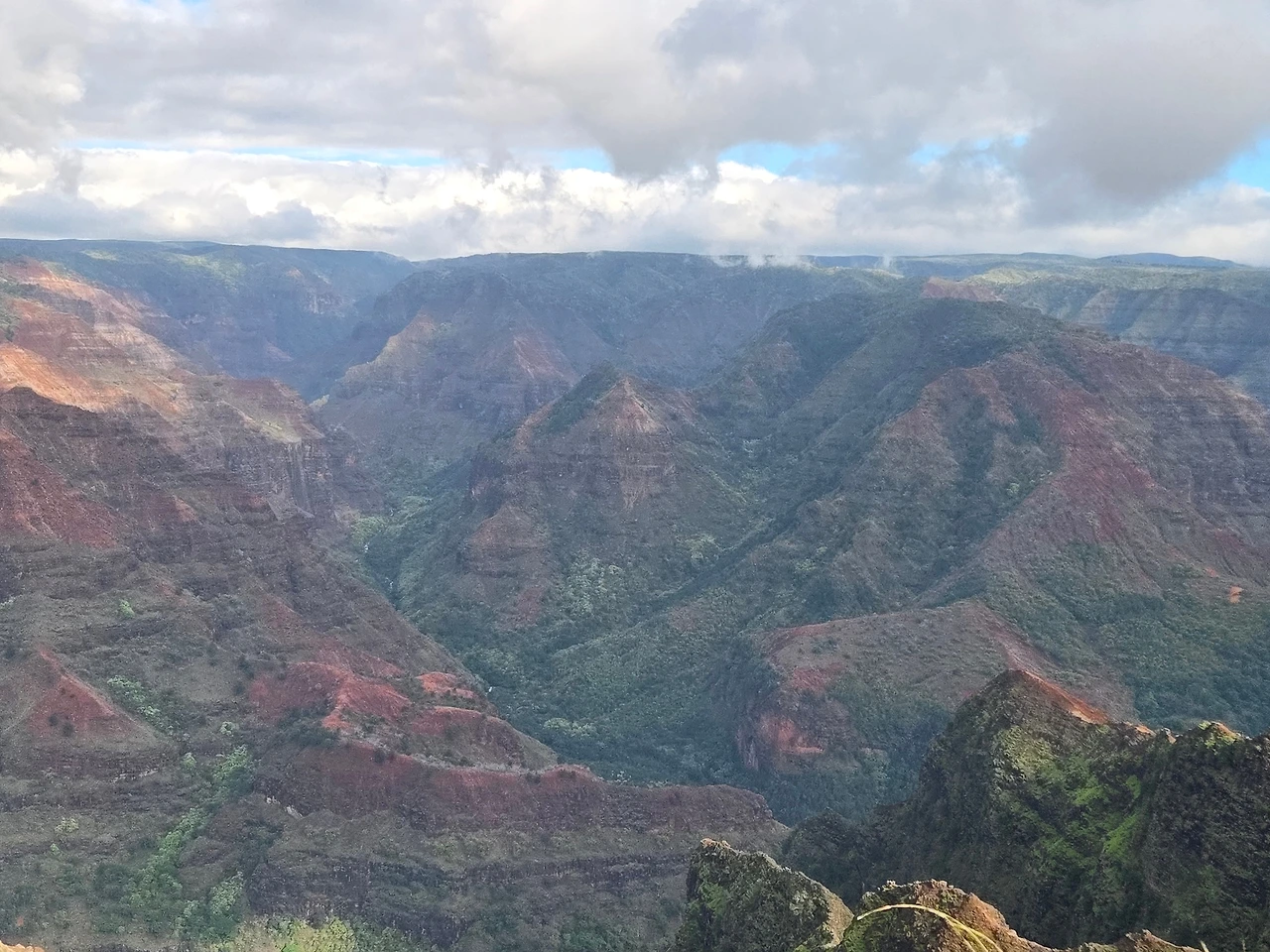 카우아이 서쪽에 자리한 '와이메아 캐니언(Waimea Canyon)'은 ‘태평양의 그랜드캐니언’이라는 별명으로 불리는데 미국 작가 마크 트웨인이 이곳을 보고 ‘태평양의 그랜드캐니언’이라고 감탄했다는 이야기가 전해진다. 약 400만 년 전 화산 활동과 침식으로 형성된 지형으로 토양의 색깔도 산화되어 붉은 황토색으로 변해 카우아이섬이 하와이에서 가장 오래된 섬이라는 것을 말해주고 있다고 한다. 깊게 파인 협곡과 붉은 흙, 그리고 초록빛 식물의 멋진 협곡 모습이 만들어내는 풍경은 그랜드 캐니언과의 웅장함과는 달리 부드럽고 아름다운 협곡으로 펼쳐진다.
