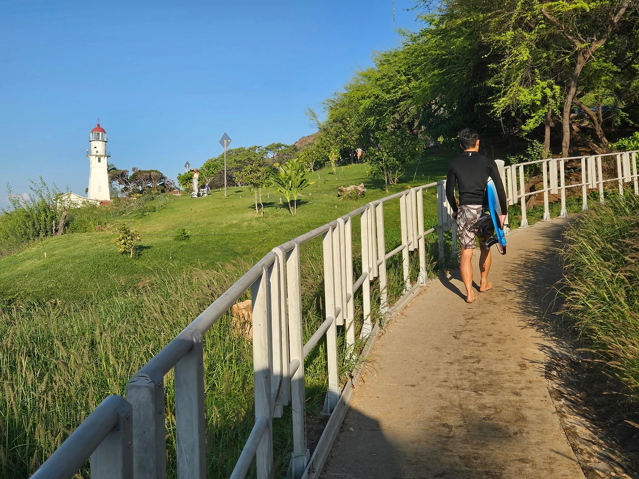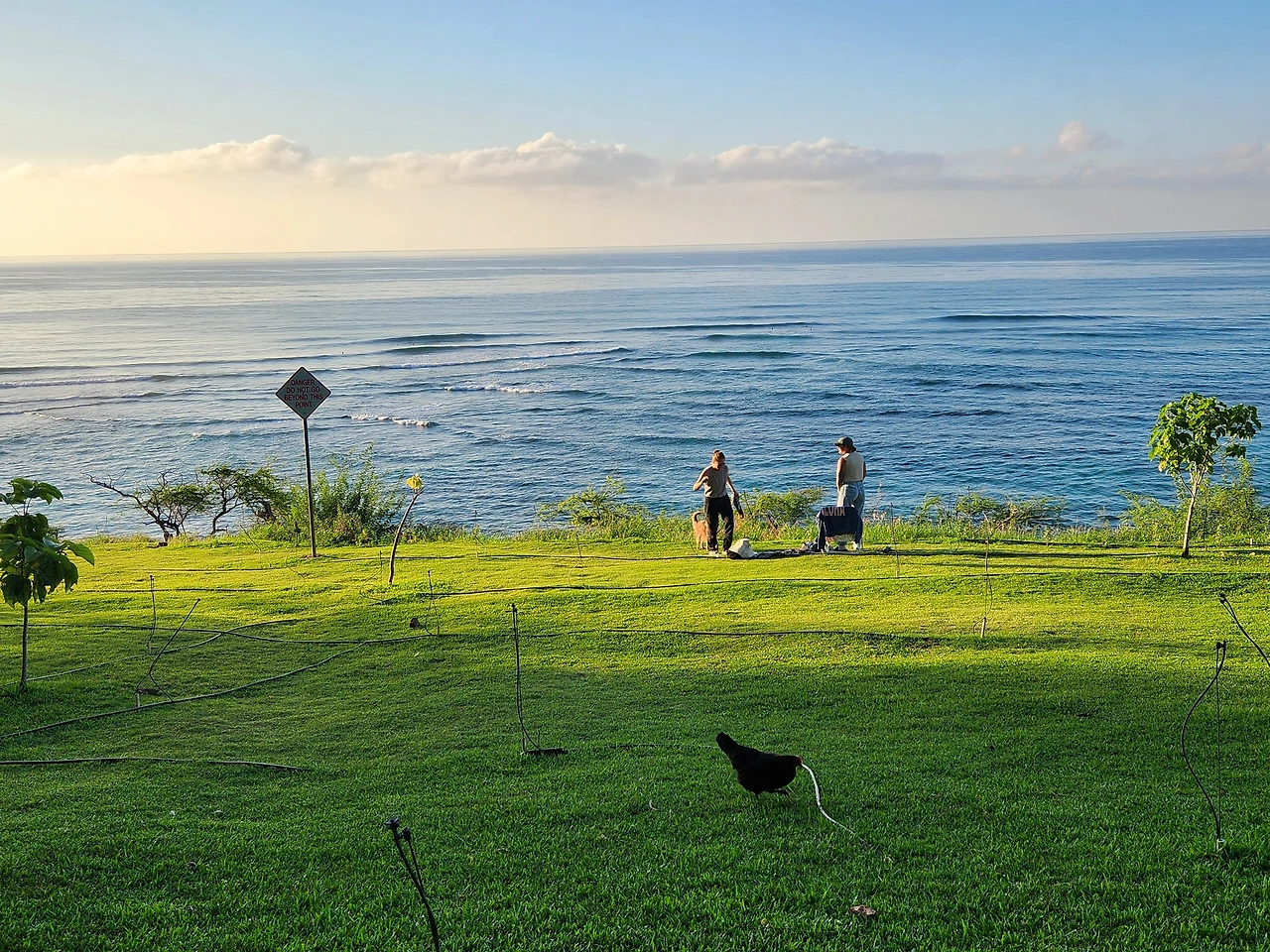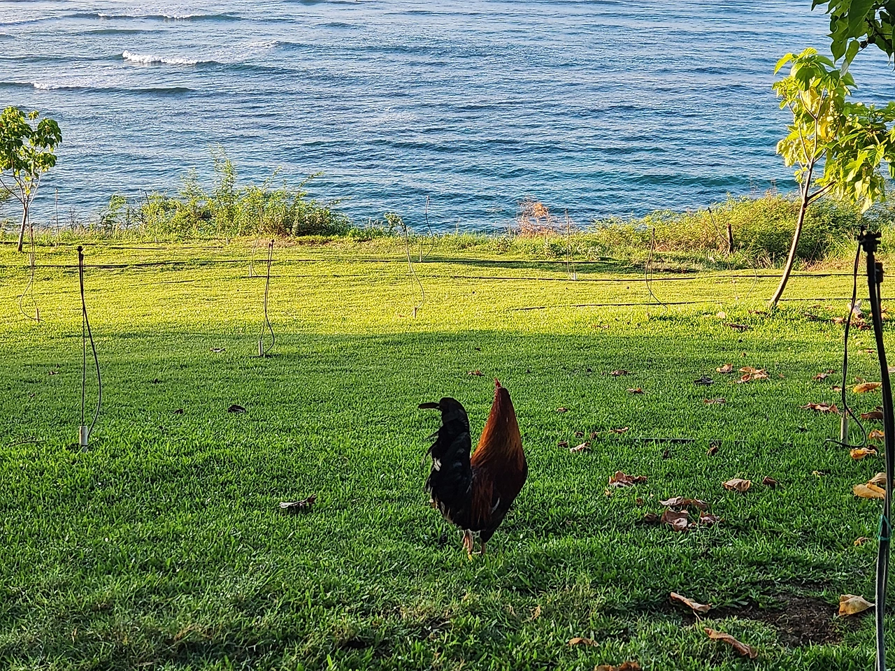 등대옆 잔디에서는 요가를 하는 사람도 있고, 아침 일찍 떠오르는 태양을 보기 위해 의자를 가져와 끝없이 햇살에 밀려오는 바다를 바라보는 커플도 있었다. 윤슬에 몸을 흔들고 다가오는 파도를 바라보는 그들의 모습이 영화의 한 장면처럼 평화로워 보인다. 그 옆에는 닭들도 푸른 잔디 위를 아침햇살을 밟으며 위풍당당하게 걸어 다니고 있다. 우리나라에서는 상상할 수 없는 인간과 닭의 조합이며 하와이는 닭들의 천국이다. 내세가 있어 닭으로 태어나려면 하와이에서, 개로 태어나려면 태국에서, 소로 태어나려면 인도에서, 고양이로 태어나려면 모로코에서 태어나야 하지 않을까 하고 상상해 본다.