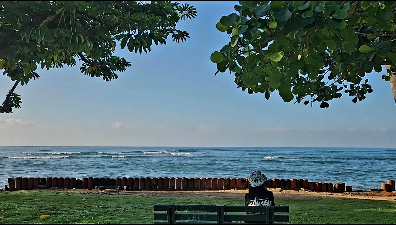 주택가를 천천히 내려가다 보니 어느새 LE AHI Beach Park에 도착한다. “Le Ahi”는 하와이어로 “Le”는 이마(혹은 머리 부분)를 뜻하고, “Ahi”는 불의 의미‘를 담고 있다. 하와이 오아후 섬의 유명한 화산 분화구 Diamond Head는 하와이어로 Leʻahi라고 불리는데 이 해변은 다이아몬드의 원래 하와이 이름을 따서 지었다고 한다. 공원 앞에 설치된 낮은 담장으로 끊임없이 파도가 부딪치고 있어서 파도가 음악처럼 소리를 내며 음률을 타고 춤을 추고 있었다. 잠시 벤치에 앉아 파도의 소리를 듣고 있었다. 마치 나에게 말을 거는 것처럼 다가오는 파도소리에 머리를 비우고 파도 속으로 빠져들어가 30분을 앉아 있었다. 바다와 나의 세계만 존재하는 평화로운 시간이었다.