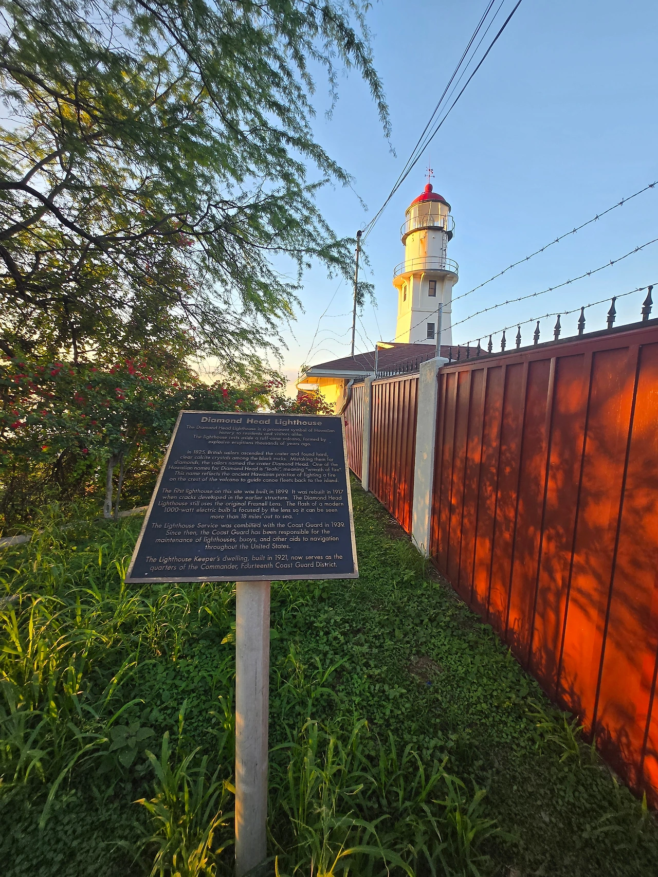 아침에 떠오르는 해를 전망대 앞에서 보려고 했으나 버스로 움직이는 바람에 전망대 앞에 도착하자 이미 해가 봉긋이 올라와 있었다. 전망대 근처가 사유지여서 들어갈 수 없었지만 초록색 잔디와 대조되어 붉은 지붕은 파란 바다와 어우러지며 더 예쁘게 다가왔다. 앞 표지판에 의하면 1899년에 등대가 세워지고 현대식 1000와트 전구의 섬광은 렌즈에 의해 초점이 맞춰져 바다에서 18마일 이상 떨어진 곳에서도 이 등대를 볼 수 있다고 쓰여있다. 지금은 해안경비대가 유지관리를 한다고 하는데 어디서 보아도 아담한 예쁜 등대였다.