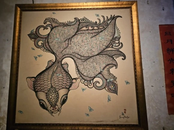 카페에서 발견한 흥미로운 것은 예스러운 선조들의 물건 중 카운터 옆에 붙은 물고기 그림이었다. 내가 최근에 배운 젠탱글의 문양으로 그려져 깜짝 놀랐다. 요즘 그림을 배우며 관심을 가진 것은 이런 도형문형으로 사물을 접목하는 방법이었다. 그런데 옛날 누군가는 이미 완성을 하고 있었던 것이다. 다양한 기법의 그림과 힘차게 획을 그은 글씨에 저절로 감탄한 순간이다. baboon 카페는 조상들의 그림과 유산을 그대로 전시하며 카페로 적절히 활용해 후손들이 살아가는 곳이다. 과거와 현재가 공존하는 카페는 너무 매력적이었다.