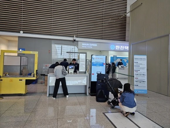 하나은행에서 인터넷으로 미리 신청을 해놓아 H위치에 가서 말레이시아 돈 링깃을 받았다. 옆에는 한진택배가 있어 짐을 부치는 사람들이 보인다.