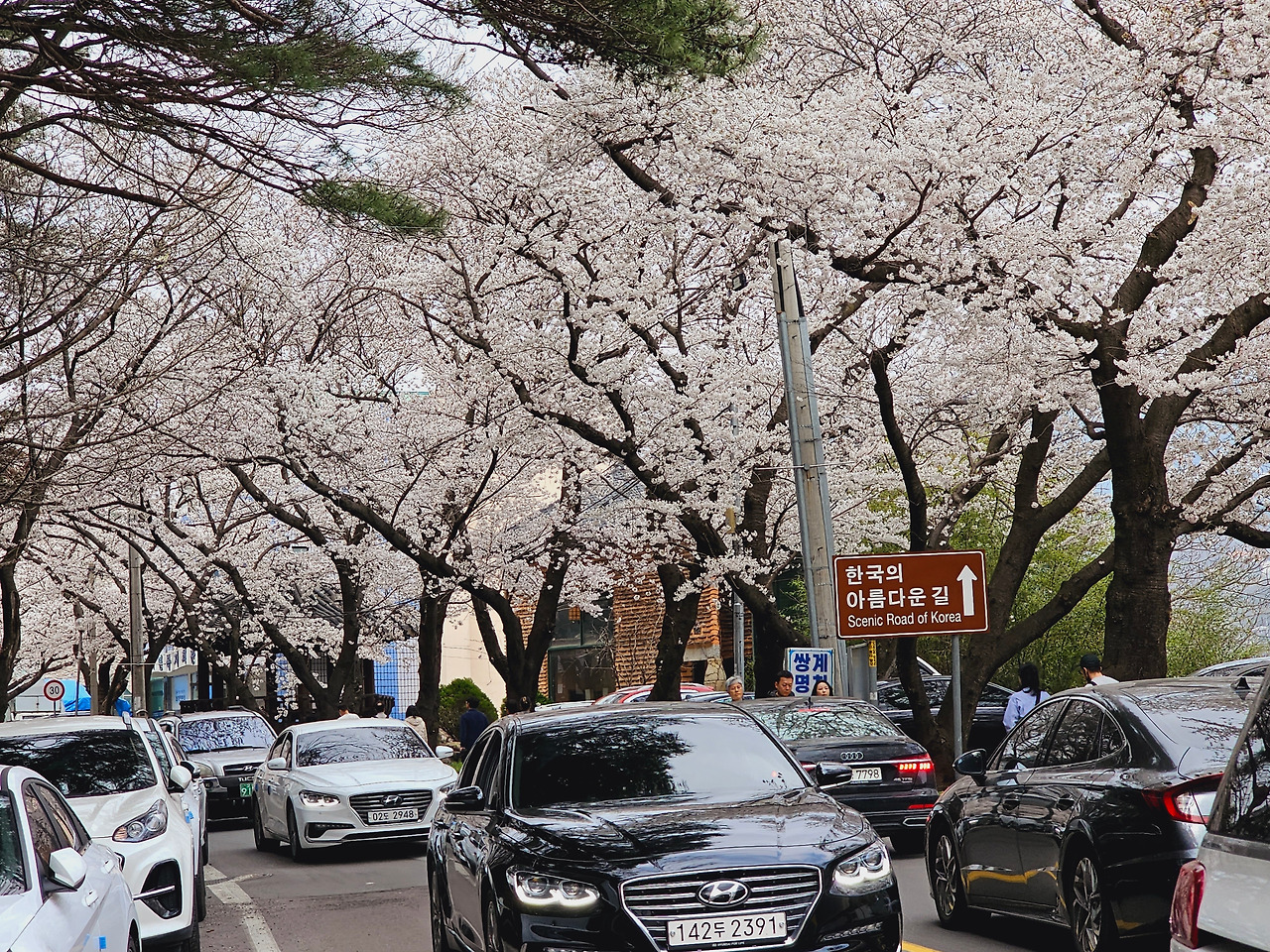 그러나 2차선 도로는 차들이 움직이지 못한 채 주차장처럼 서있고 네비를 찍어보니 쌍계사까지 차로