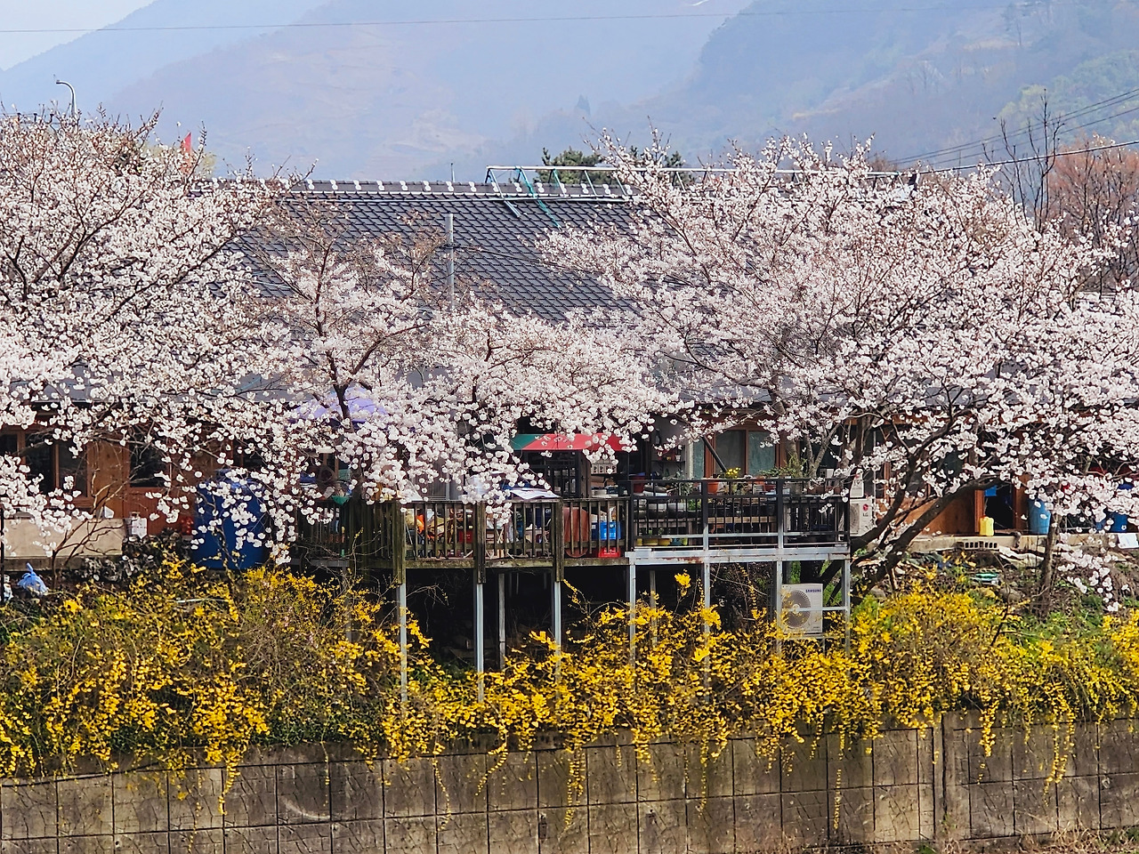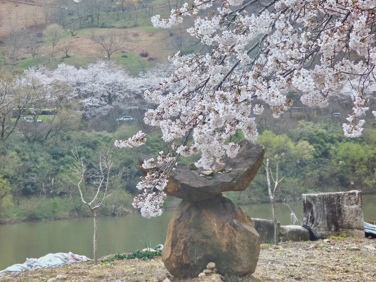 개나리 노란 옷에 청초하게 풍성한 하얀 꽃을 매단 벚꽃을 두른 섬진강은, 햇빛에 반짝이는 파란 강물을 더 싱그럽게 해 주고 있었다. 봄바람에 날리는 하얀 벚꽃잎처럼, 노목에 신선한 꽃을 피우고 흩어지는 바람결에 내 몸을 실어 날아가고 싶었다.