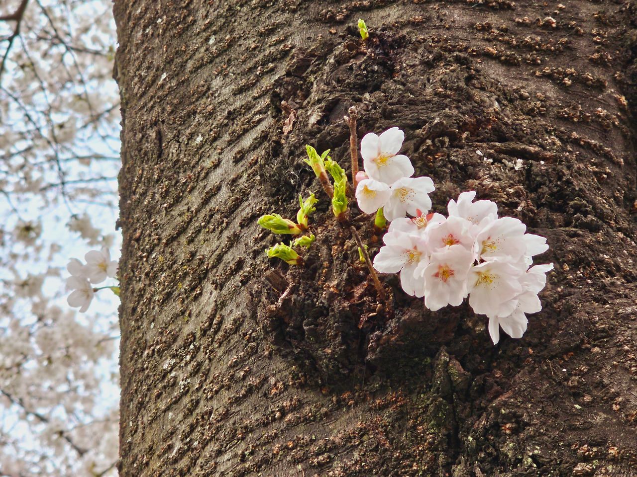 거의 2시간이나 걸린다는 사실을 알았다. 할 수없이 섬진강을 따라 걸으며 벚꽃을 만끽했다. 처음에 일본에서 꽃이 예뻐 가져와 심었다는 벚꽃나무는 세월만큼이나 굵은 묵직함을 보여주며 하얀 눈송이들을 달고 있었다. 특히 노목에서도 굵은 껍질을 뚫고 나오는 새싹 벚꽃은 생명의 신비로움을 더해주었다. 많이 달려있는 가지의 벚꽃보다 유독 노목 중간에 핀 벚꽃 새싹이 싱그럽다.