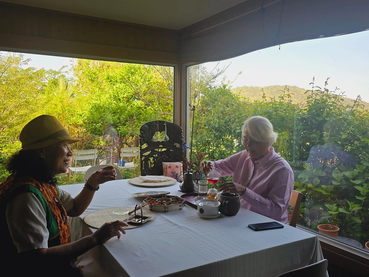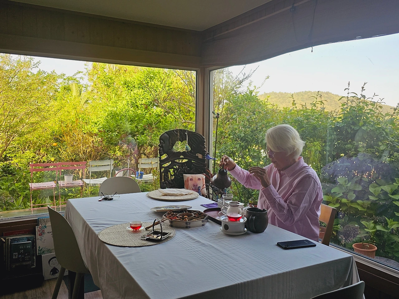 제주 속에서의 삶은 이런 걸까? 자유로운 영혼을 가진 제주 사람을 종종 만난 기억이 있다. 어느 오름길에서 만난 사람은 1년 정도 본인의 집을 렌트해 주고, 그 돈으로 외국에서 1년을 여행하며 온다고 말한다. 또 어느 분은 가정식 음식을 하는데 그날 영업을 하는지 확인하고 가라고 하는 이야기를 한다. 그분도 자기 생활을 즐기며 부캐로 사람들과의 만남을 갖는 것 같다. 나의 부캐는 뭘까? 80살이 넘어도 저런 멋진 삶을 살 수 있을까? 조그만 발상의 전환이 그녀의 삶을 풍요롭게 해 주고 멋지게 늙어가게 하는 (well-ageing)것이 아닐까? 정성 들여 만든 차를 대접하며 한편으론 다른 사람의 이야기를 공감해 주고 힐링의 시간을 갖게 하는 제주 삶의 상담사가 아닐까 생각해 본다. 그녀가 의도한 건 아니지만 상대방의 이야기를 들어주고 공감해 주는 것만큼 좋은 것이 어디 있으랴?