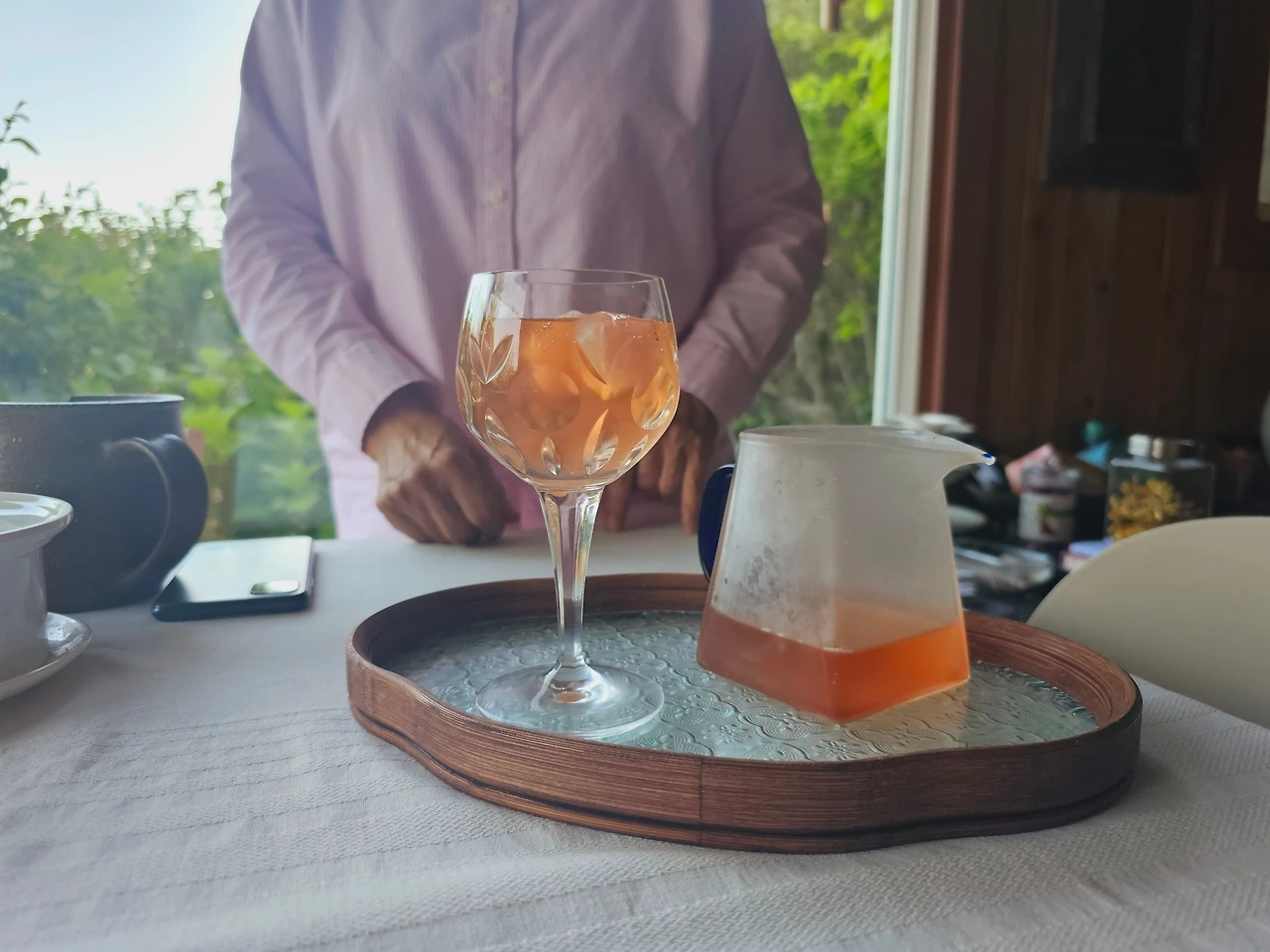 마지막 딸기 샤베트를 와인잔으로 마시며 달콤함으로 혀를 녹인다.