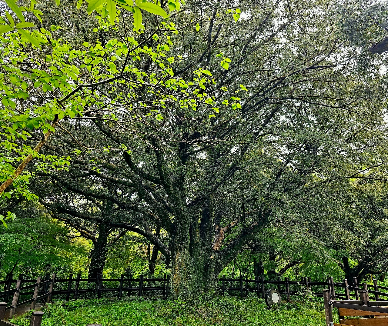 그런데도 제주에서 만난 사람은 따뜻한 기억을 남긴다. 1인 카페 할머니를 만나 노년의 삶을 다시 생각해 본 시간, 이른 아침 손님이 없는 카페에서 사장과 나눈 대화도 흥미로웠다. 제주는 4월이면 고사리를 따는 적기여서 많은 제주 할머니들이 새벽에 고사리를 찾아다닌다고 한다. 새벽이 위험하지 않은 지 물으니 뱀은 새벽에 별로 돌아다니지 않고 오히려 오후 날씨 맑은 날에 자주 보인단다. 내가 알고 있는 상식과는 너무 달랐다. 그는 카페 주변 돌담장 부근에서 많은 뱀을 보았다고 한다. 흙과 맞닿아 있고 적당한 습기가 있어서 제주의 흙담이 뱀이 서식하기 좋단다. 뱀은 새벽이나 흐린 날 보다 화창한 날 몸을 말리기 위해 담장 밖으로 나온단다. 예전에 근무했던 학교 교정에서 오후 맑은 날 뱀이 허물을 벗고 뱀 껍질만 남긴 채 사라진 걸 본 적이 있었다. 흥미로운 뱀 이야기를 들으며 하루를 조심스럽게 다녔다. 특히 그날 흐린 오후 비자림에 가서 1189년에 태어나 올해 835살의 비자나무를 보고 왔다. 카메라에 다 담을 수 없을 정도로 웅장하게자란 할아버지 비자나무를 보며 세상 살기 괜찮은지 물어본다.