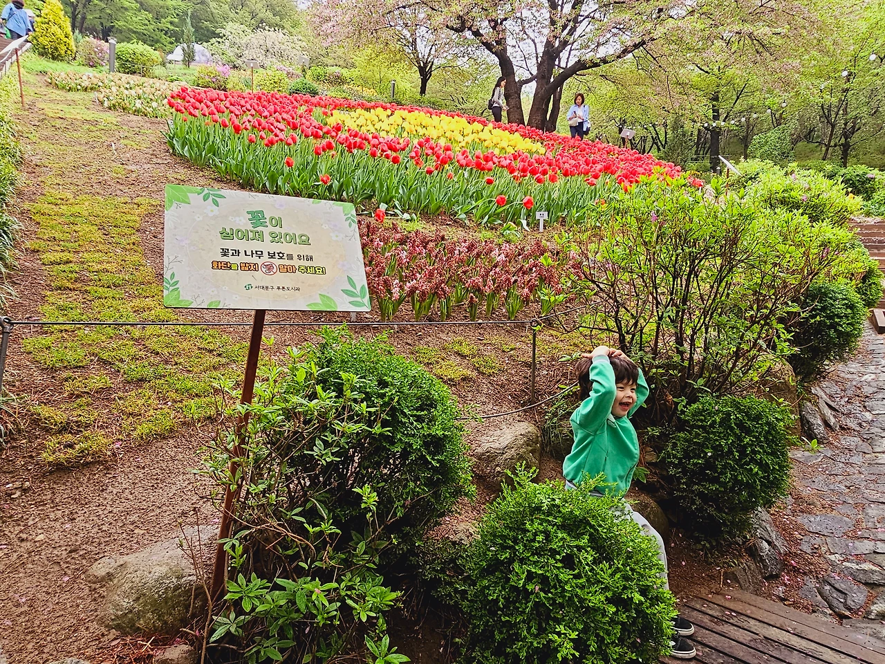 오늘 하루 2시간에 걸쳐 데크길을 산책하면서 모처럼 좋은 공기를 마시며 하루를 보낸 것 같다. 봄을 맞이하는 사람들의 마음이나 머리, 가방에도 꽃비가 내리는 4월의 봄을 맞아 짧은 시간이지만 봄의 꽃과 초록의 냄새를 흠뻑 마신 것 같다.
