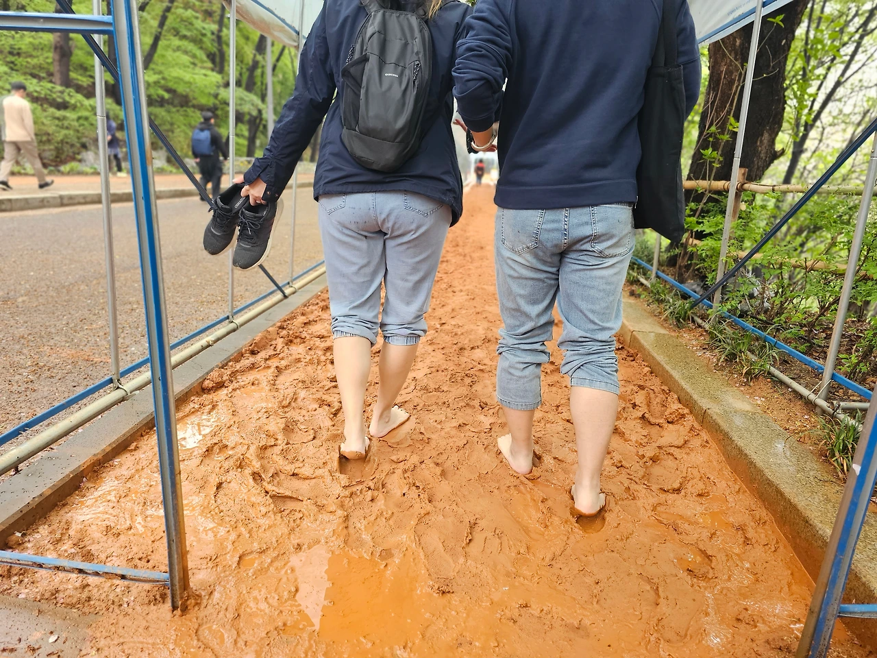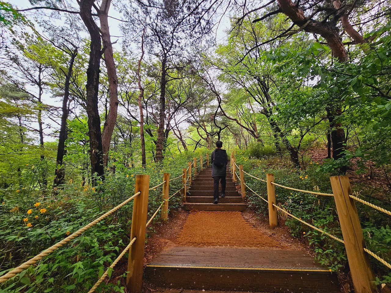 매화와 유사한 꽃이 황금색으로 피어서 황매화라는 이름을 가진, 초록잎에 앙증맞게 매달린 노란 꽃을 보며 길게 뻗어있는 데크길을 따라간다. 이 데크길은 편편하게 이루어진 산책로여서 노약자나 어린 아이들과도 산책하기에 좋을 듯하다. 또 곳곳에 시민들이 즐길 수 있는 황토로 걸을 수 있게 만든 황톳길도 조성되어 있어서 아이들이나 연인들이 손잡고 함께 걸어가며 재미있는 체험을 할 수 있는 곳이기도 하다.
