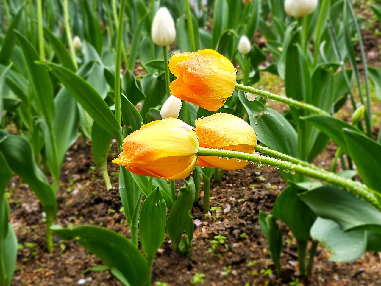 아침에 이슬비가 와서인지 꽃들은 방울방울 물방울을 매달고 있어 마치 맑은 눈물로 씻어낸 듯하다. 사람에게 무슨 말을 전하려는 것처럼 이슬을 매달고 있는 꽃들이 더 청초하고 아름답다.