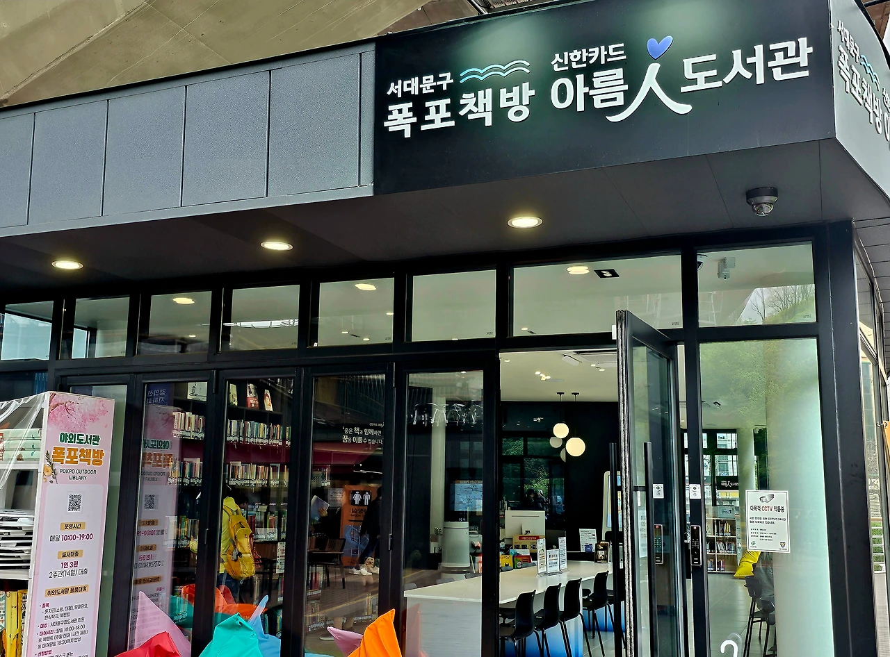20분쯤 걷다 보면 홍제 인공폭포에 도달한다. 이 인공폭포는 2011년에 조성되어 인공폭포답지 않게 자연미가 살아있어 다양한 사계절 모습을 보여주고 있다. 특히 23년에 오픈한 카페나 폭포 책방도서관은 사람들에게 커피를 마시며 담소를 즐기고, 도서관에서 푸른 초목사이로 시원하게 뿜어져 나오는 폭포를 보며 책을 읽을 수 있는 여유를 준다. 폭포소리와 더불어 시간을 정해 운영되는 음악분수는 사람의 마음을 즐겁게 하고 자연과 일치할 수 있는 힐링 명소라 하겠다.