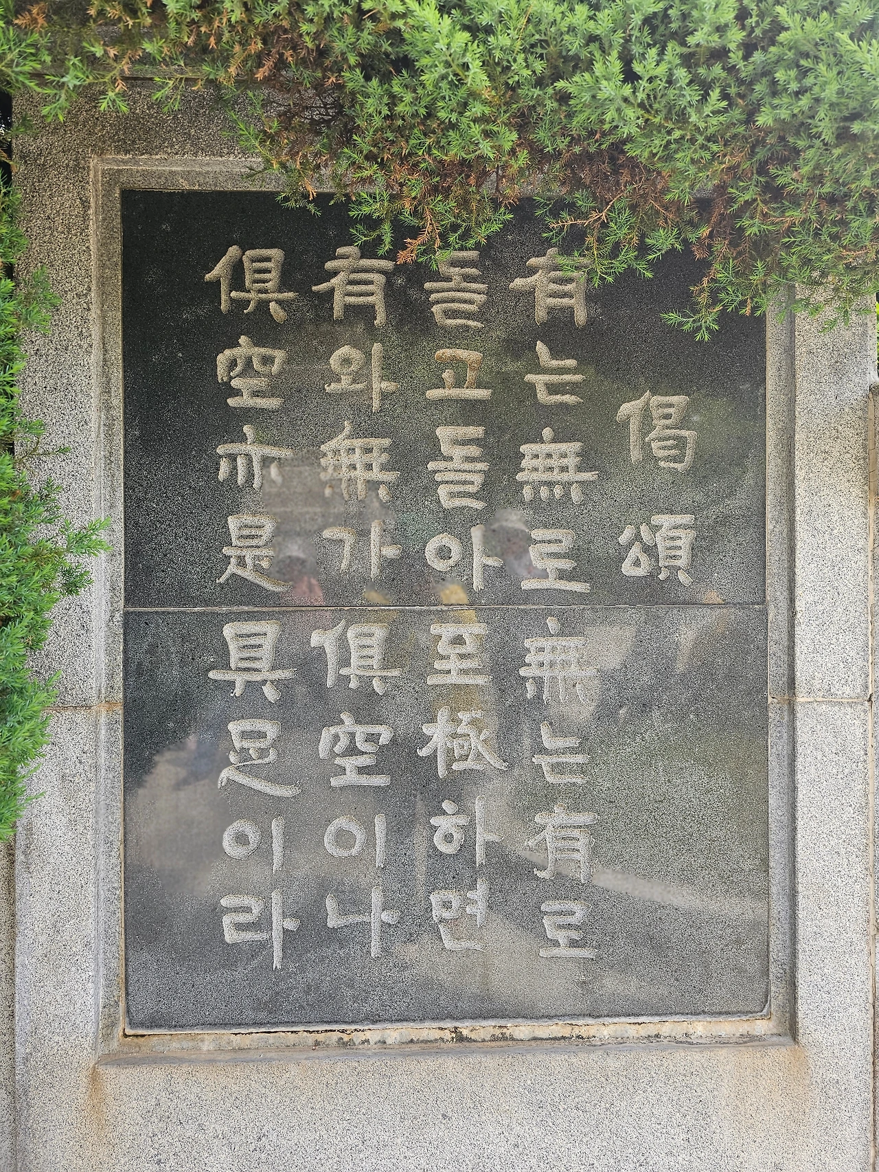 정원을 산책한 후 명상의 시간을 가졌다. 명상하는 방법 즉 몸을 바르게 세우고/편안하게 앉아/숨이 나가고 들어옴을 지켜보며/본래 고요하고 청정한 마음을 챙긴다는 설명과 함께 자세와 호흡법을 알려주는 중요한 시간을 가졌다. 명상이 스트레스와 정신건강에도 도움이 되는 건 알고 있었지만 뉴욕 맨해튼에 명상버스 Be Time이 운행되어 고요한 버스 내에서 편안한 명상을 할 수 있다는 사실은 흥미로웠다. 원불교 식당에서 맛있는 점심식사를 대접받고 미륵사지로 향한다.