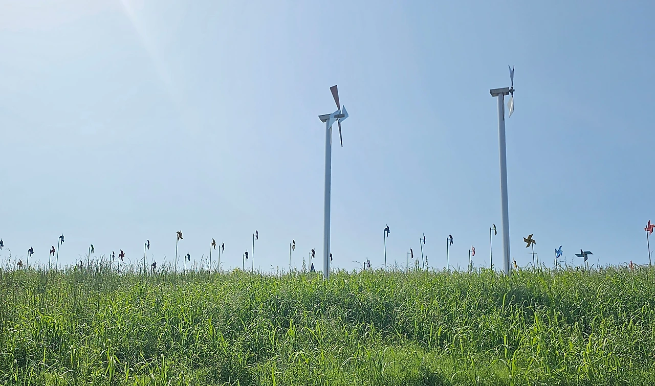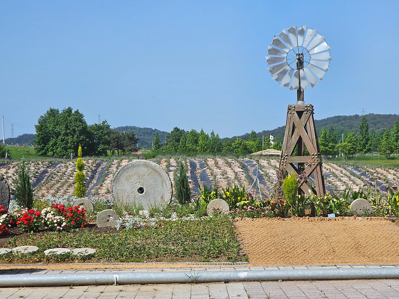 우리는 깡통열차를 타고 성당포구 앞 금강으로 흐르는 산북천 둑길을 따라 용안 생태습지와 바람개비 길을 달렸다. 깡통열차는 유행가 가사를 울리며 끝없이 이어진 바람개비 길을 따라 상쾌하게 달렸다. 넓은 생태습지에는 길 가장자리에 바람개비를 곳곳에 설치해 마치 동화의 나라에 온 것 같았다.
